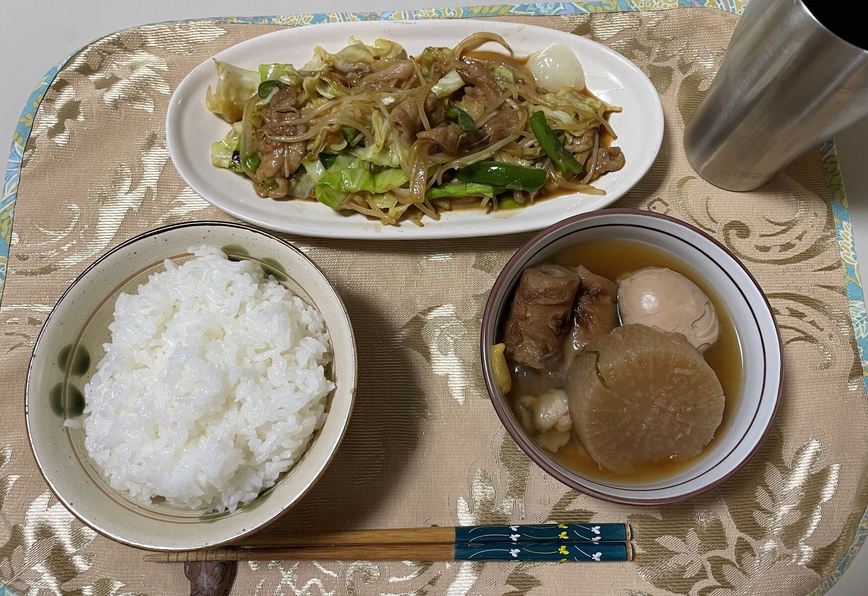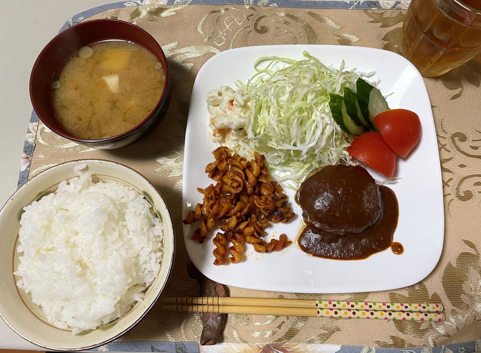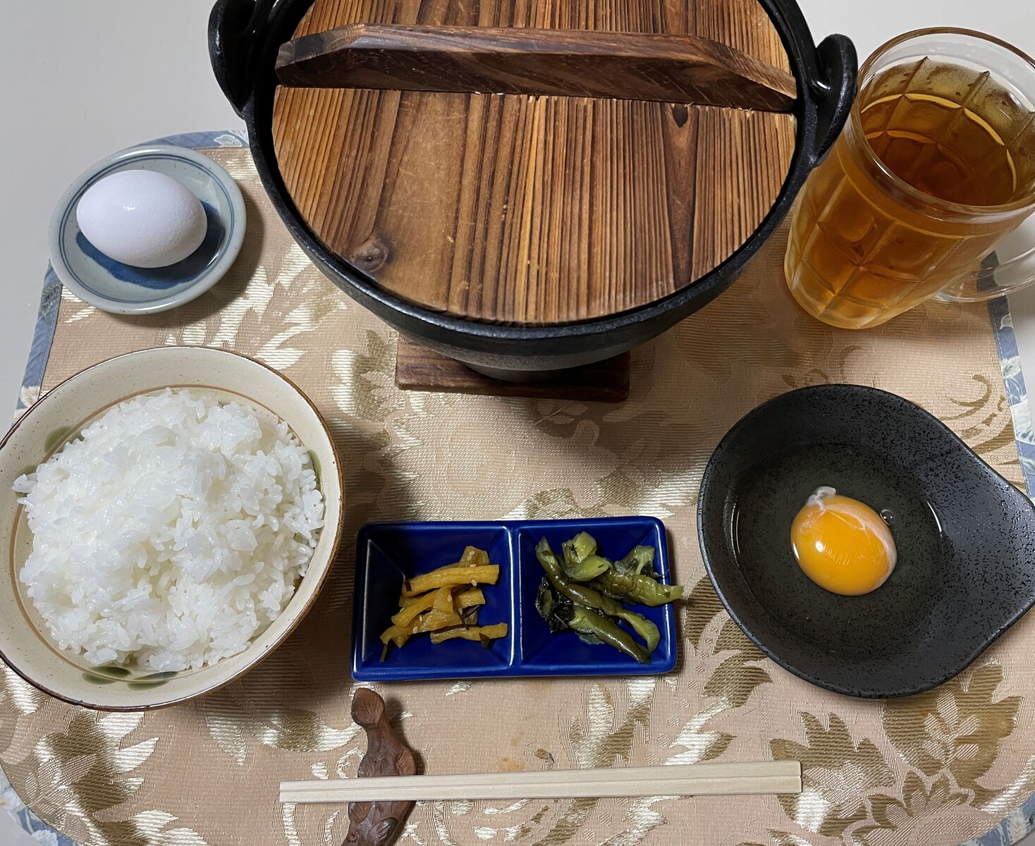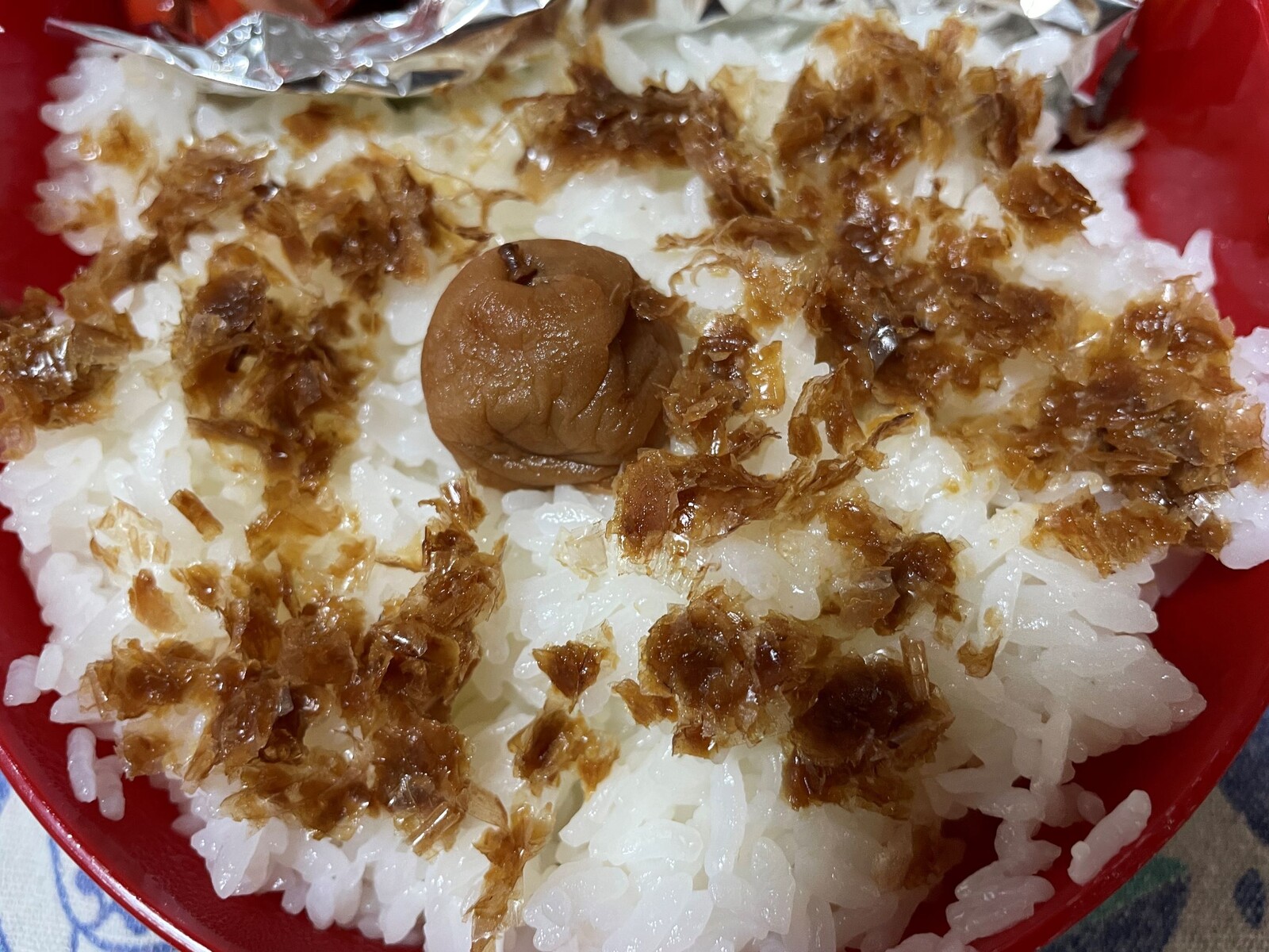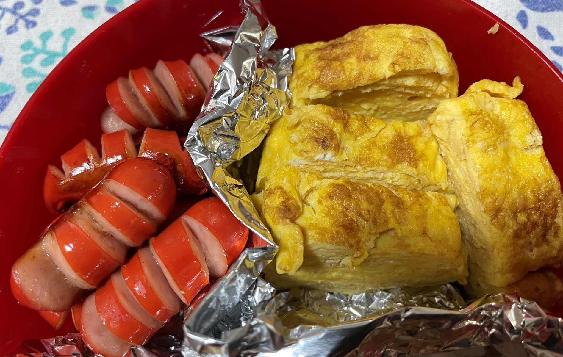 赤ウインナーと玉子焼きにおかかごはんだけですよ、でもこれがシンプルでいいんですよね!!
