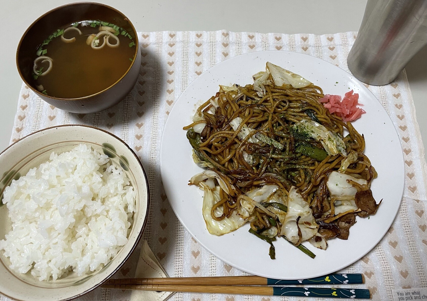 いつものソース焼きそばよりなんかコクと旨味が出てますね、アルコールよりもゴハンが進む味になりました