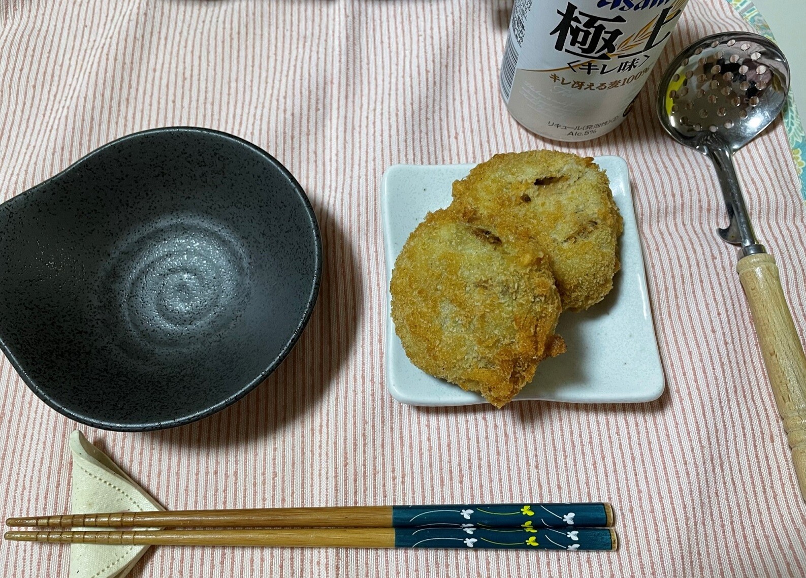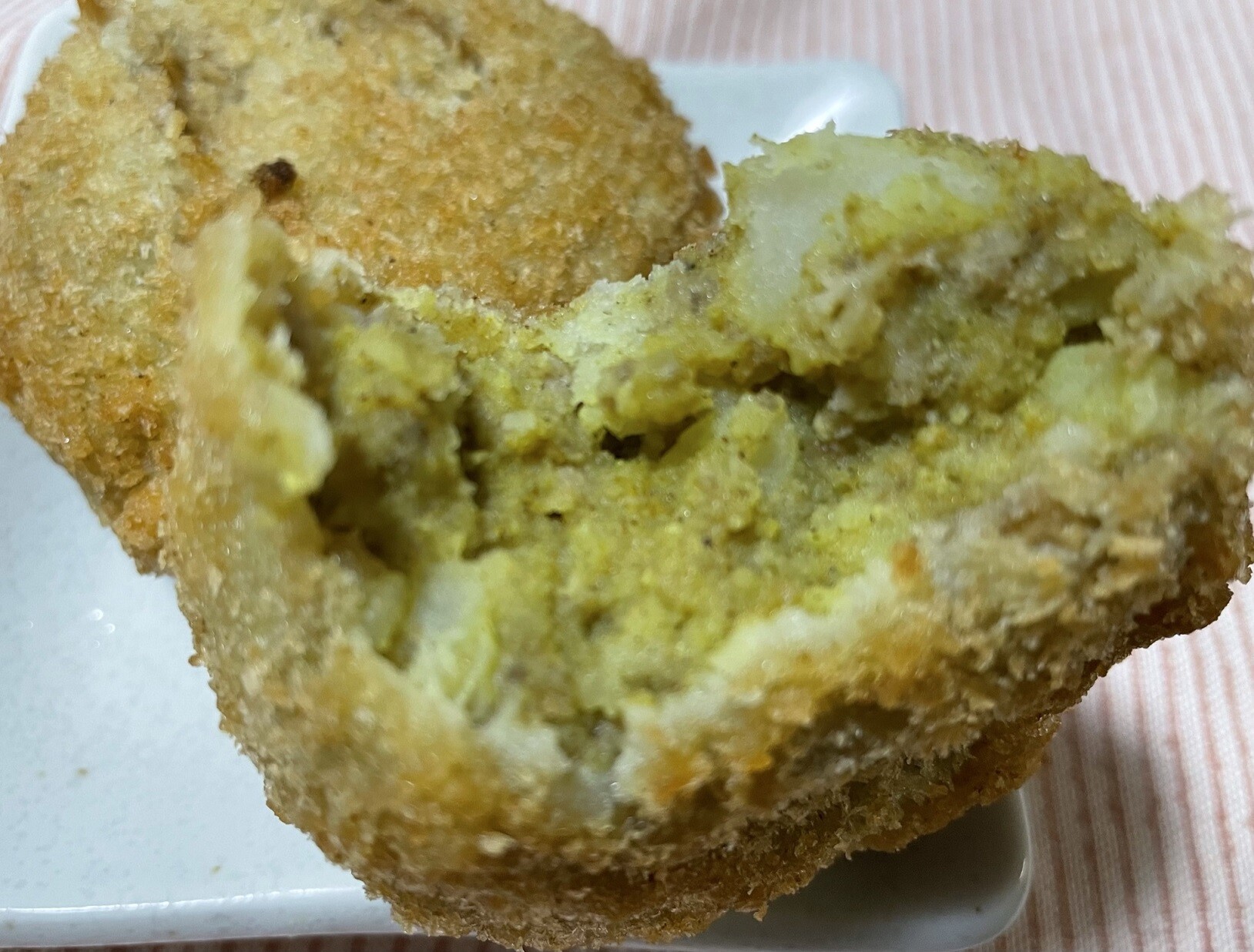 あの美味しくないコロッケの別バージョンのカレーコロッケです、これも多めに作ってしまっているんです、ちょっとでも消費しなきゃ・・・