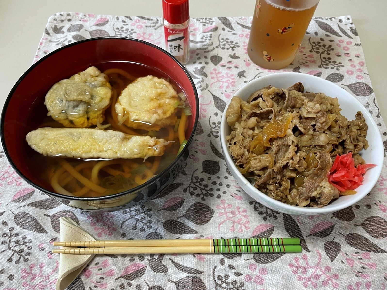 牛丼と天ぷらうどん、うどん屋さんやそば屋さんに行ったら幾らになるかたまったもんじゃないな
