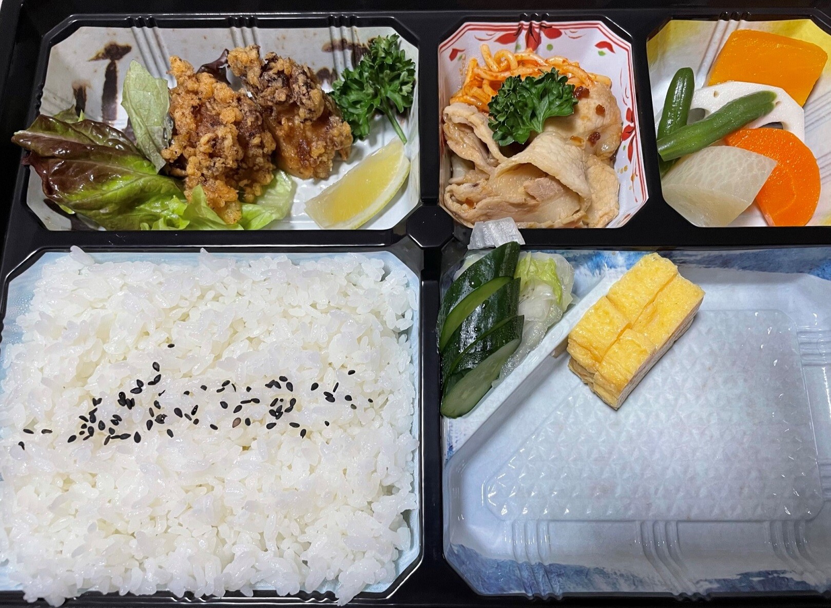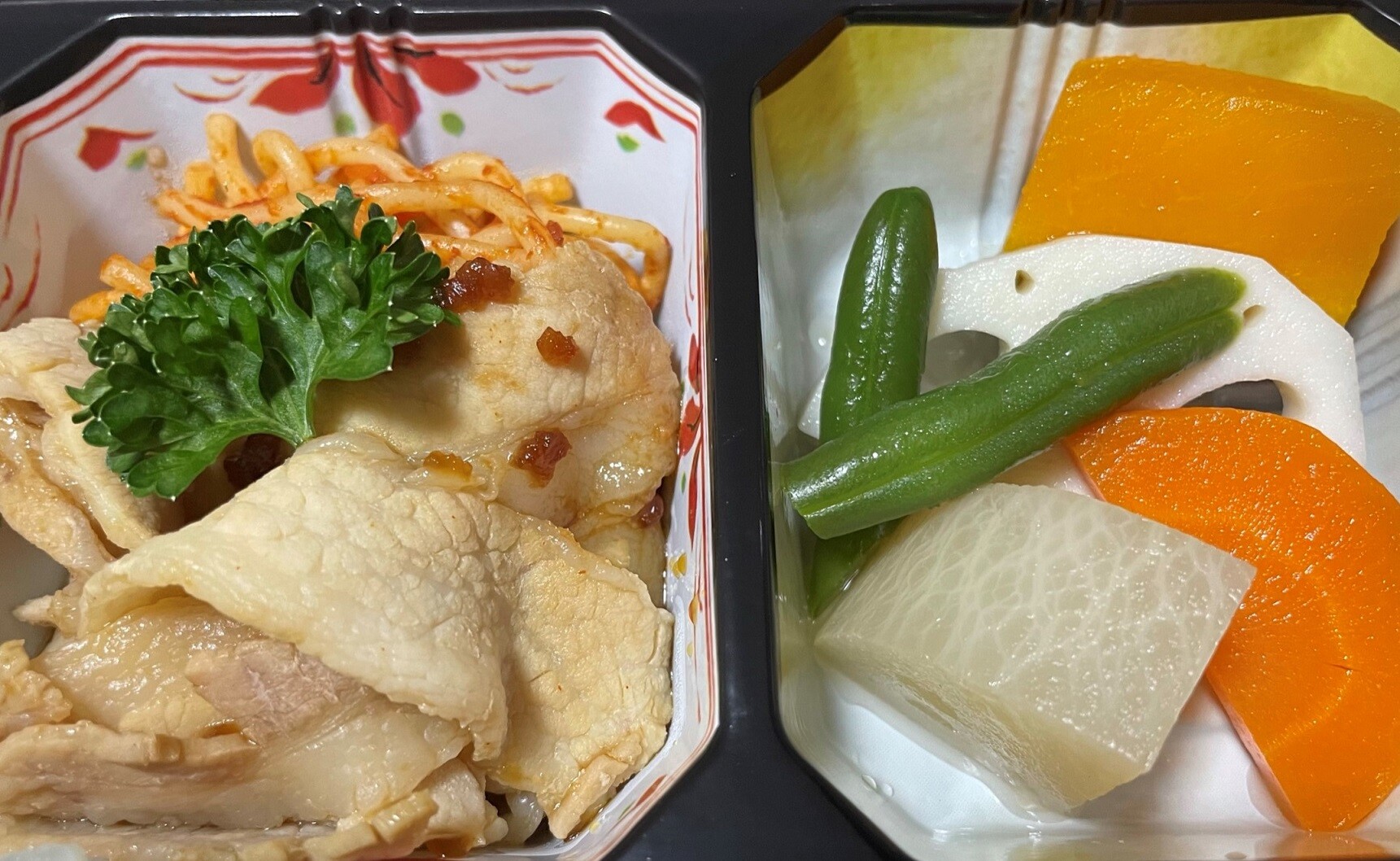 ちなみに唐揚げ、ナポリタン、豚の生姜焼き、野菜の煮物、玉子焼き、刺身、漬物、味噌汁とごはんに追加の野菜の煮物、どれもこれも美味しかったです、特に刺身は身が分厚くて新鮮で美味しかったです、大満足しました、この弁当を食べれて幸せです、そんな幸せ気分で素敵な夢を見て就寝しましょうね、でもぬるぬるする夢しか見ないんだろうな。゚(´^o^`)゚。