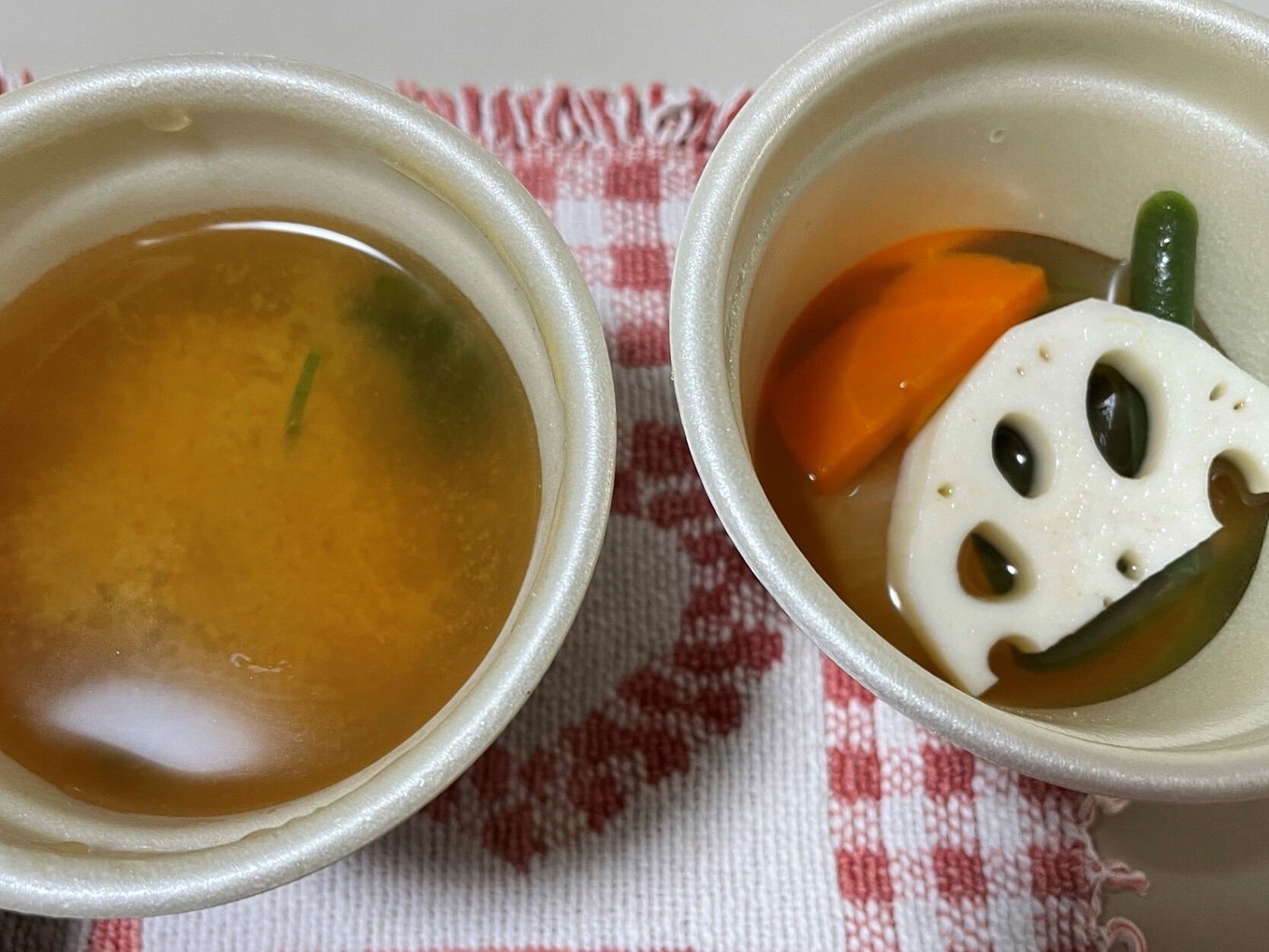 こういう事なんです、温かいおかずとは別にしてくれているんですよ、そして味噌汁と追加注文の野菜の煮物も一緒に食べて行きましょう!!