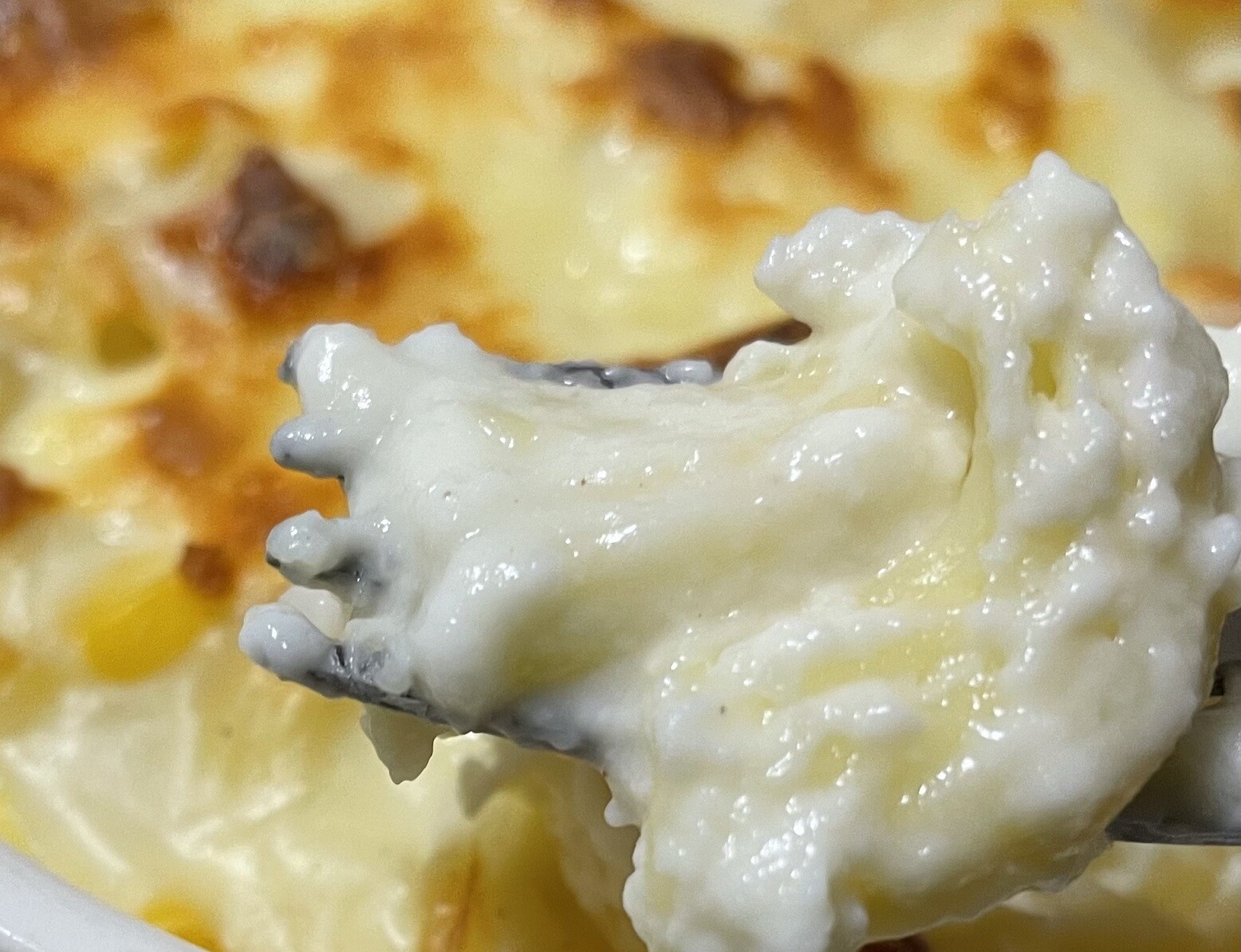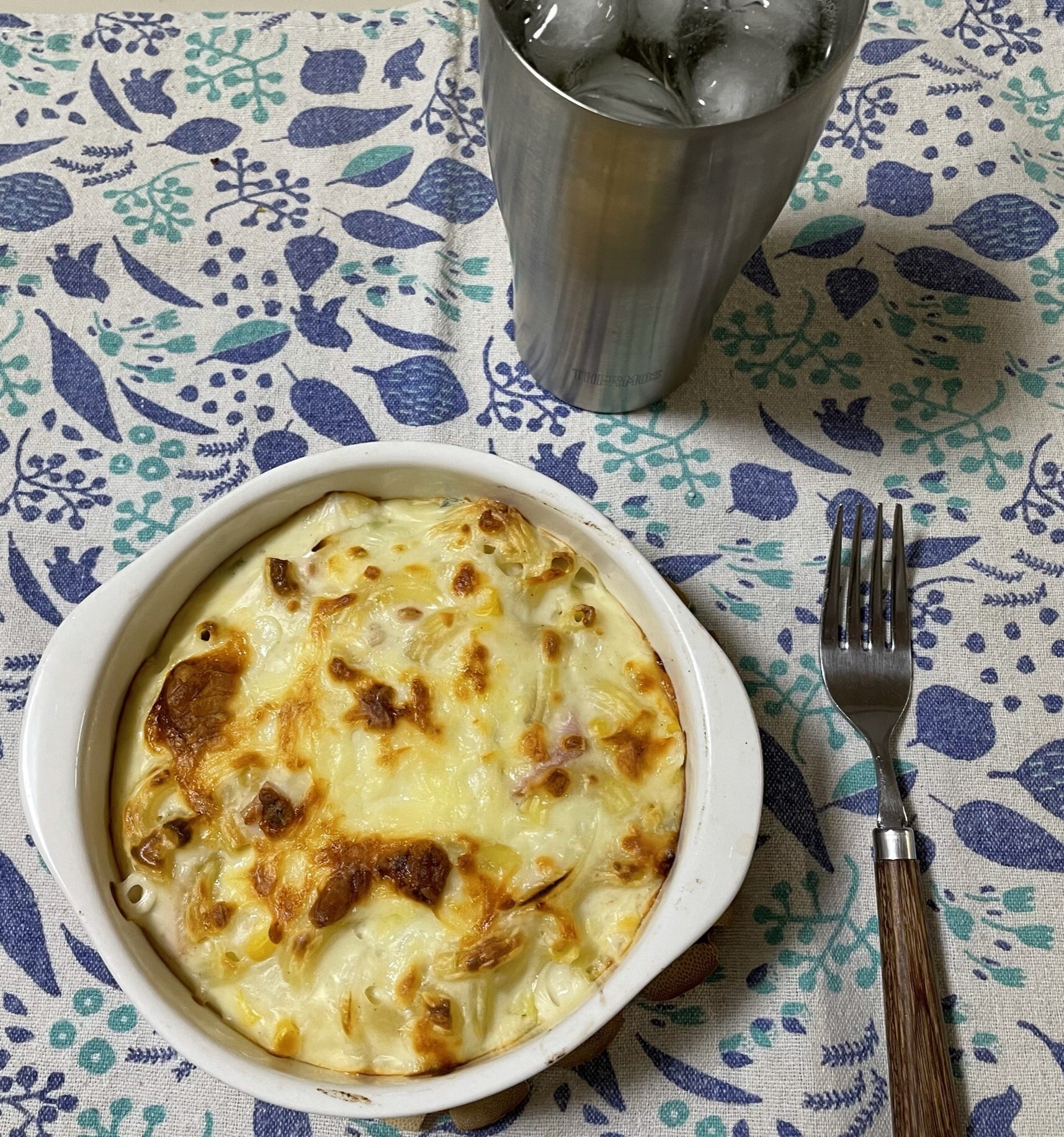 じゃぁ~シメの炭水化物はコッテリラーメンではないけれど、洋風でコッテリにしましたよ (笑)少し前につくっていたマカロニグラタンを解凍してから焼きました。