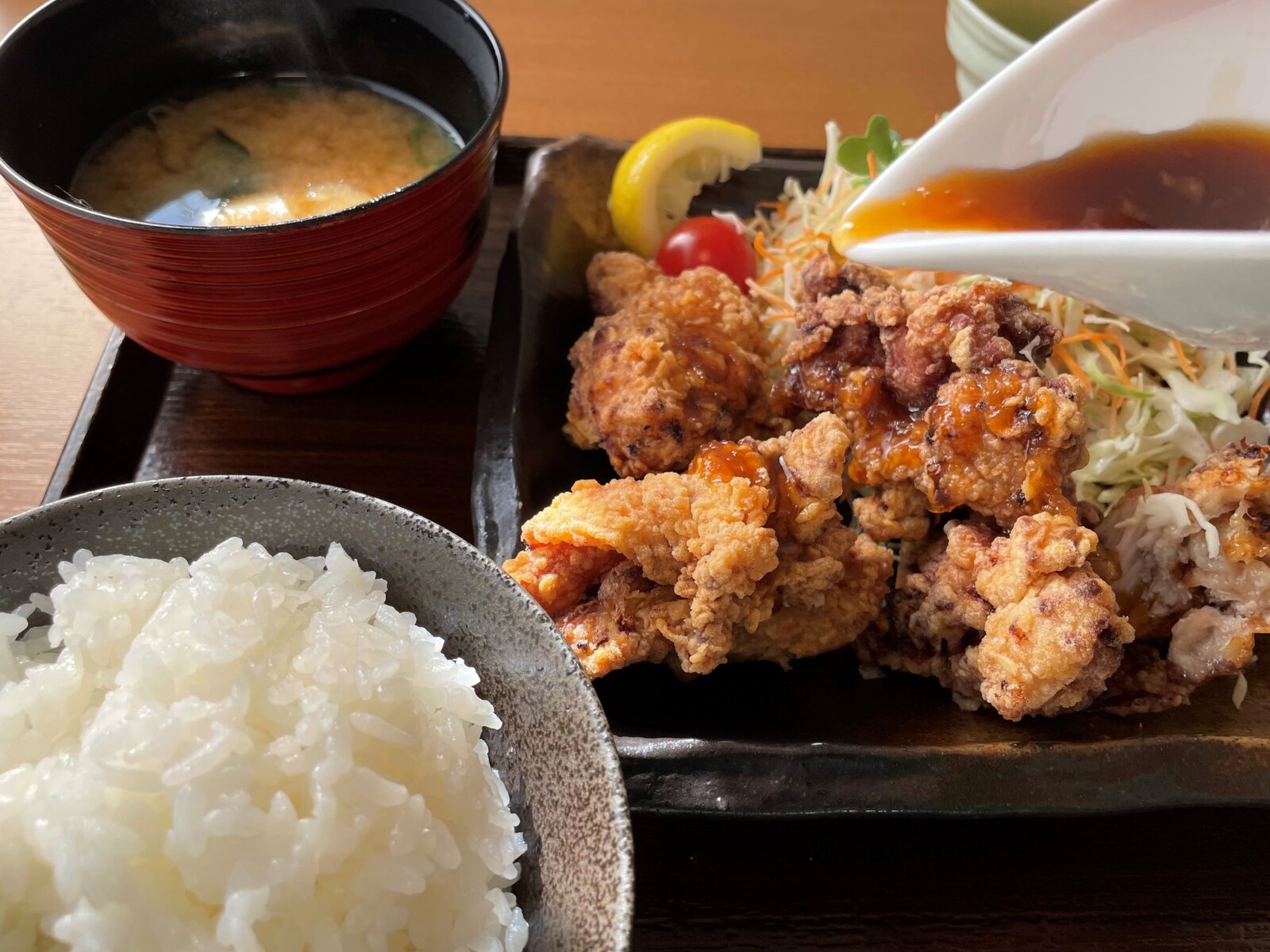 レモンソースは甘めの醤油のベースのソースでした、個人的には何もかけなくても美味しいから、最後の一個だけレモンソースをかけて味変で食べるのもいいかもです、まぁ~でもチキン南蛮定食よりもこちらの定食の方が人気なのが超納得でした