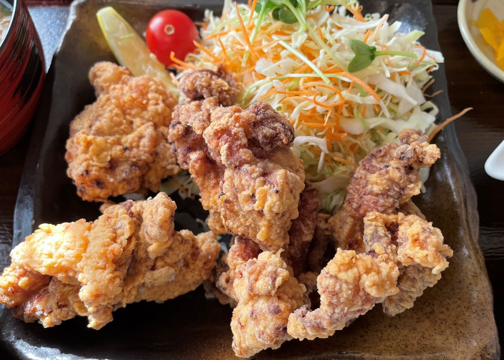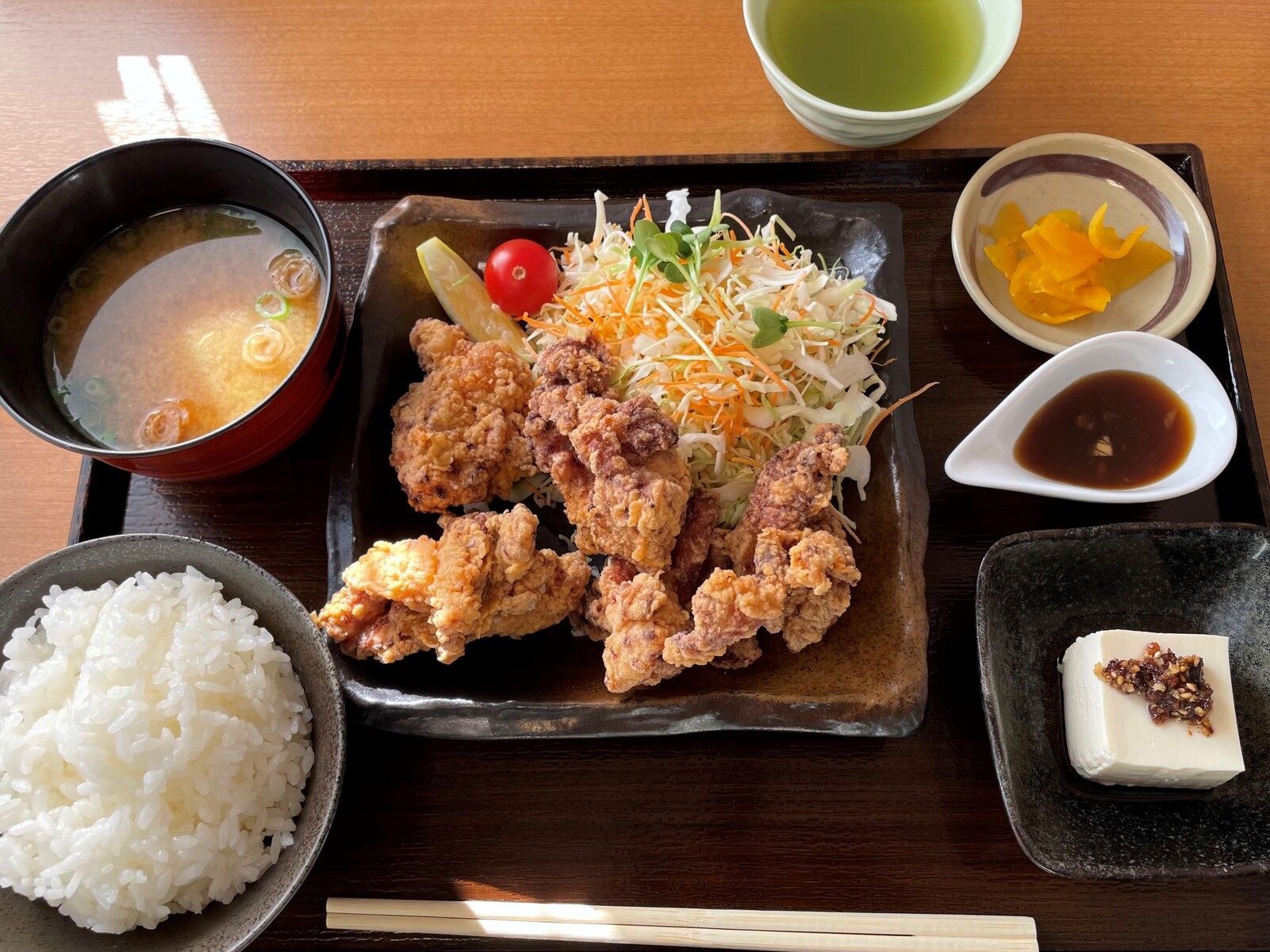 少し待ったら揚げたてのからあげ定食が出来ましたよwktk