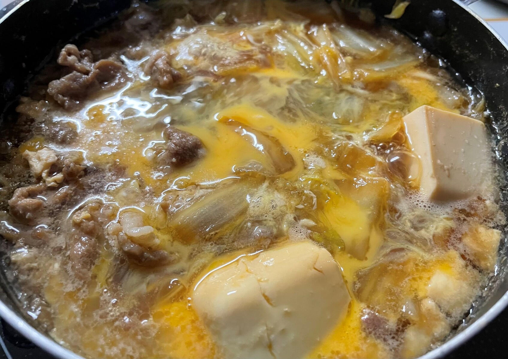 👆👆👆ぐつぐつ煮えてるのがたまらないでしょ、味付けは同じなんですからwww多めの玉子を用意してビールも用意したら・・・