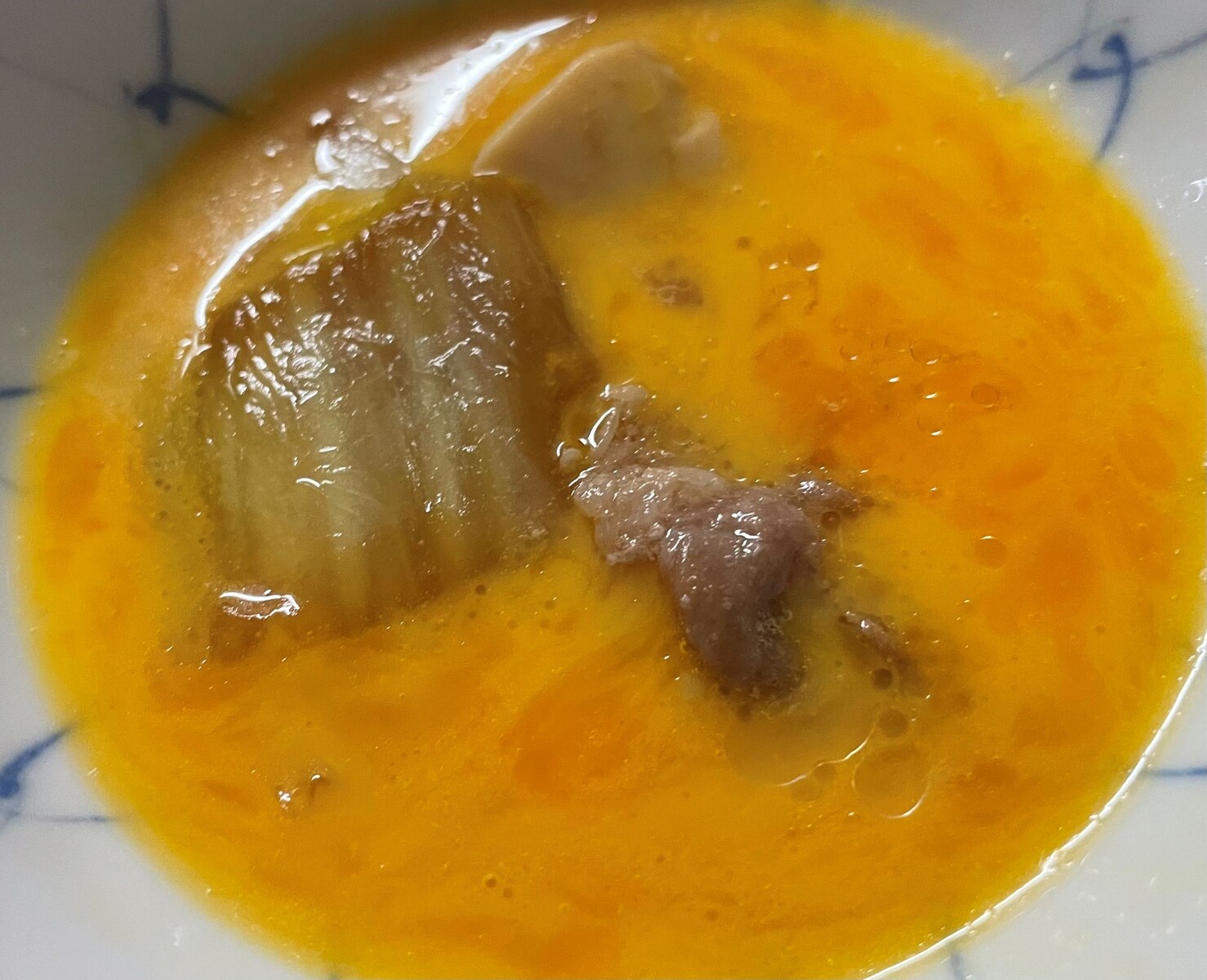 途中まで普通に食べて残りは玉子をとじて食べました。
