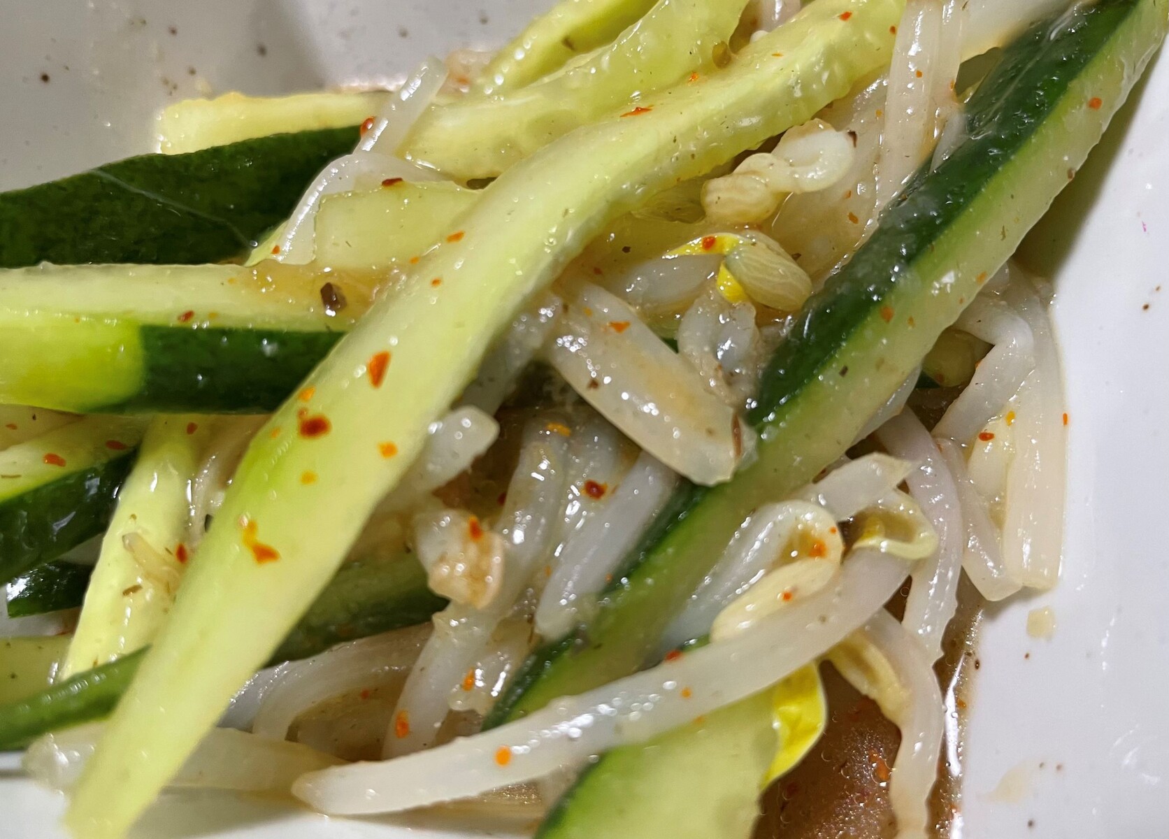 もやしと胡瓜はポン酢で和えているのでサッパリなんです。