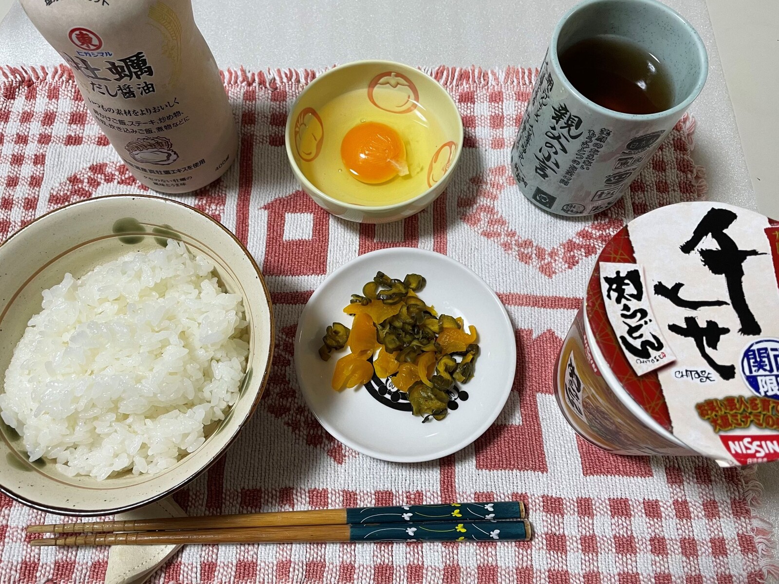 TKGとカップ麺を用意しました。