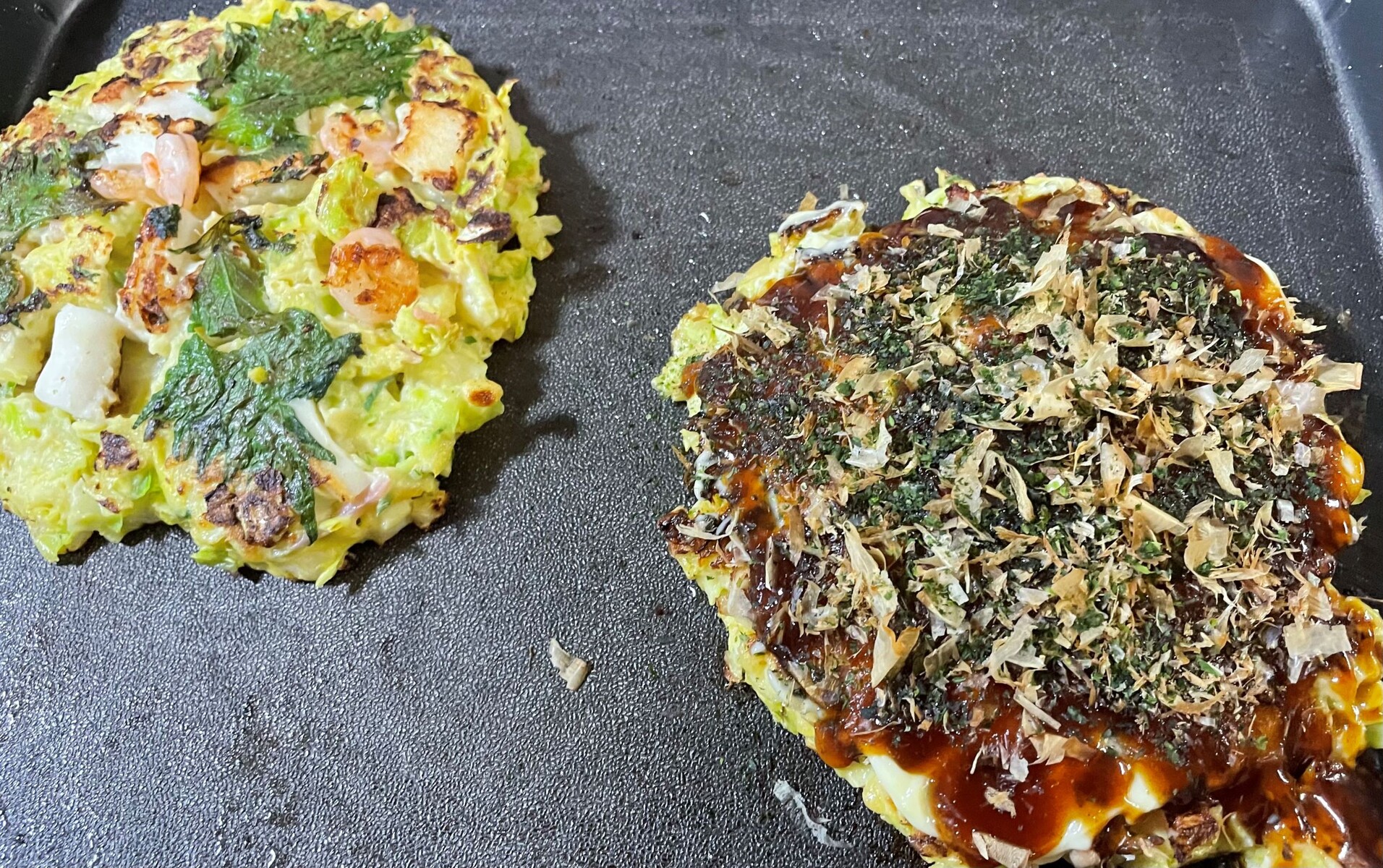 ちなみに右のシソ入り豚玉は🐷ふ~ちゃんので左の海鮮玉シソ入りのお好み焼きは👸姫様のです。