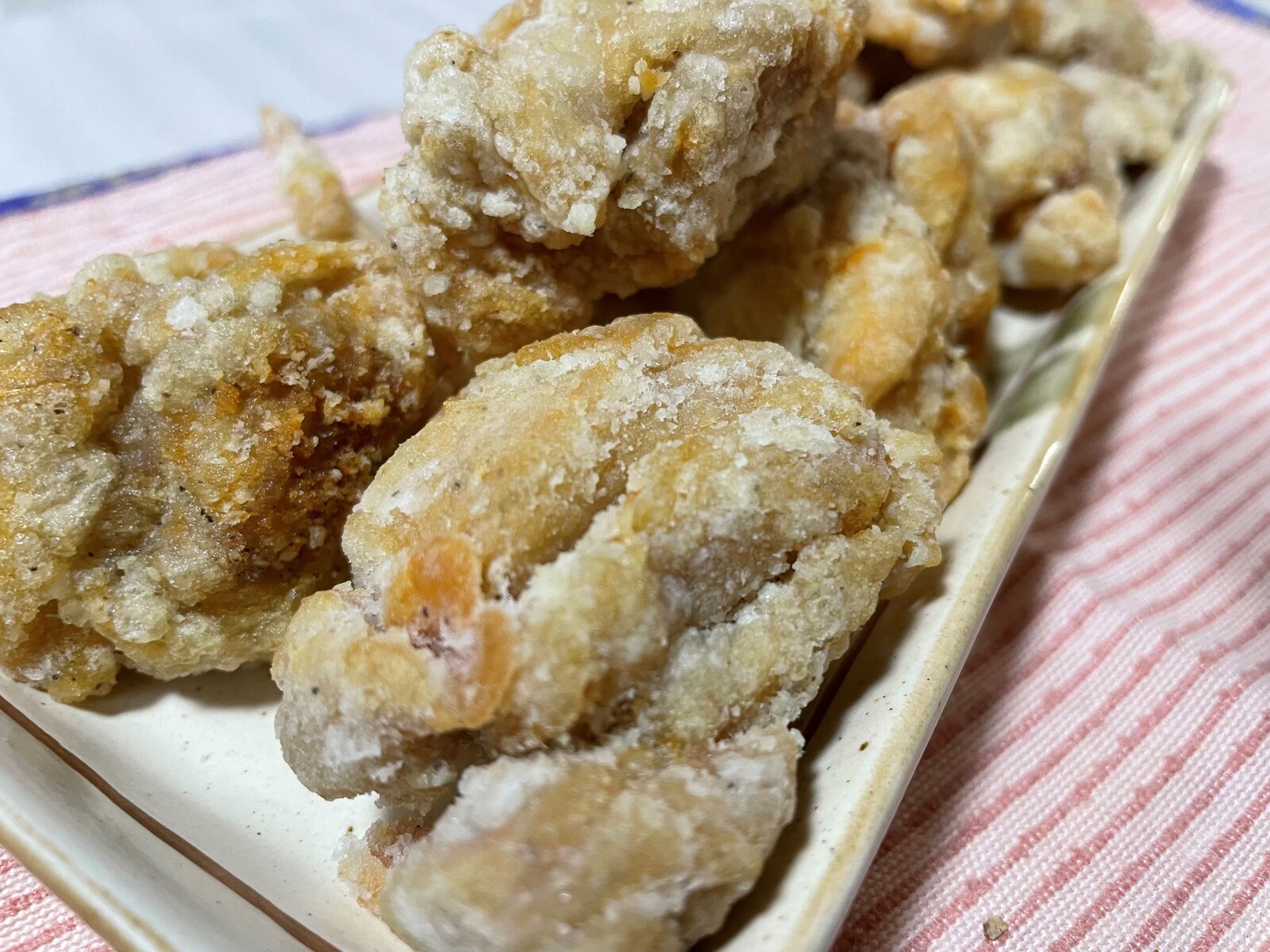 以前はチキンソティーで食べたんですけど、悪くはなかったのですが、なんか味が物足りない感じが少ししていました、なのでこちらを使って唐揚げも出来るって書いてあったので片栗粉をまぶして揚げてみたんです・・・