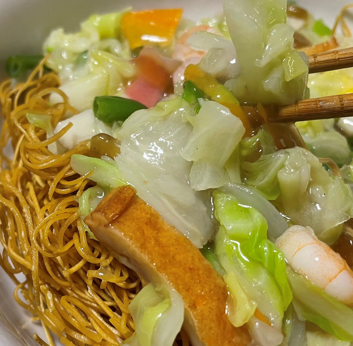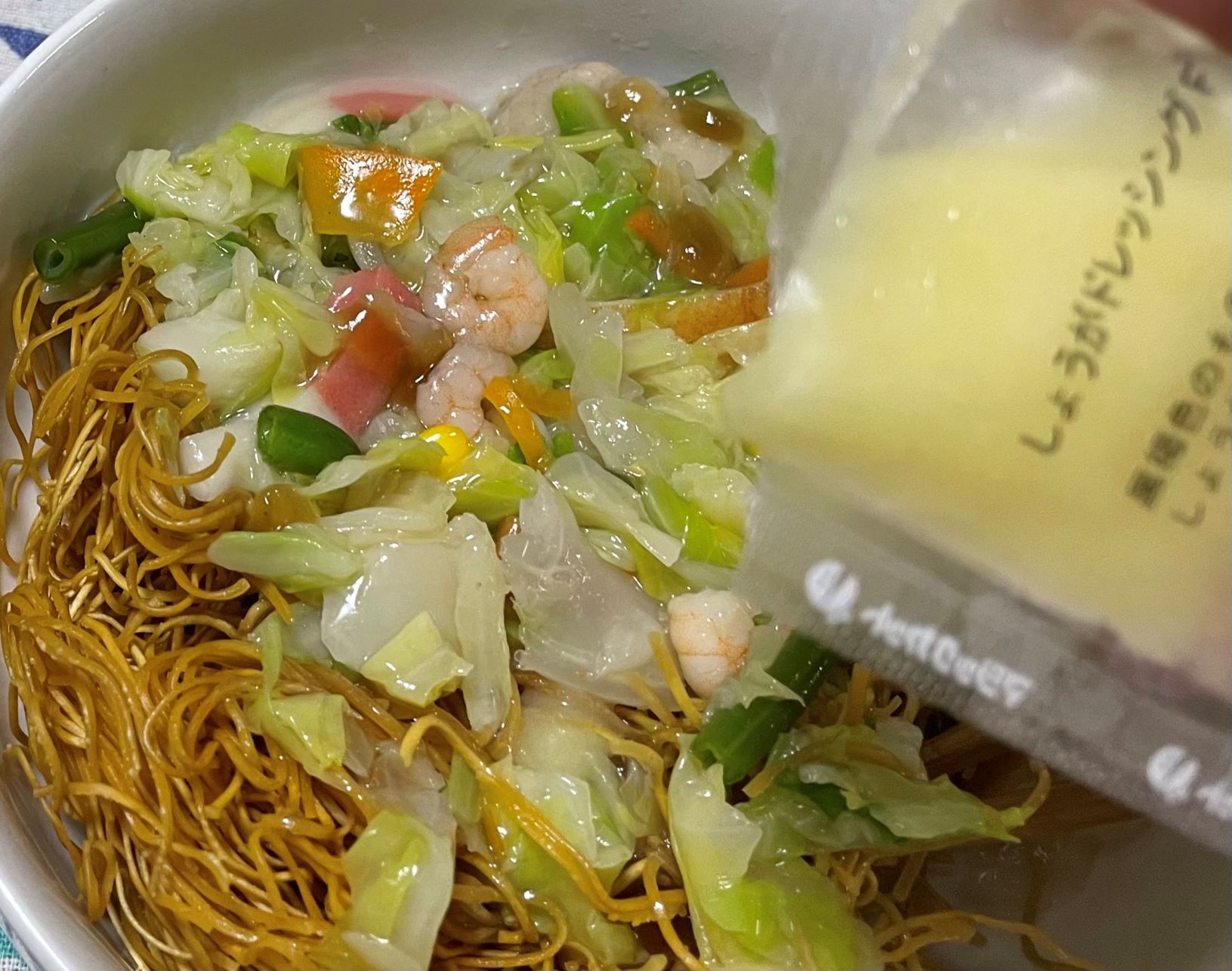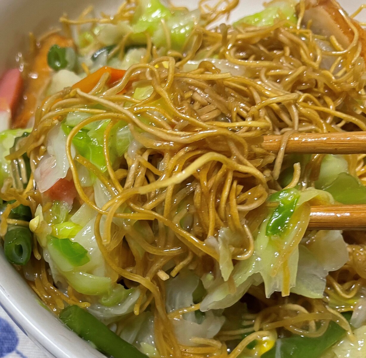 リンガハットの野菜たっぷり皿うどんが冷凍庫に保管してあるので、そいつを食べましょう、野菜たっぷりだから日頃の野菜不足も解消ですねwwwwww今回もいい感じに出来上がりました💮