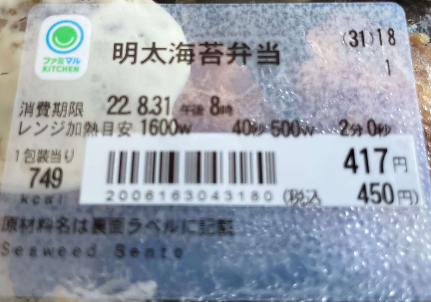 なんとなくファミマのこの弁当をチョイスしましたよ、やっぱのり弁を買うって事はほかほか弁当に未練があったと言う事ですね(苦笑)