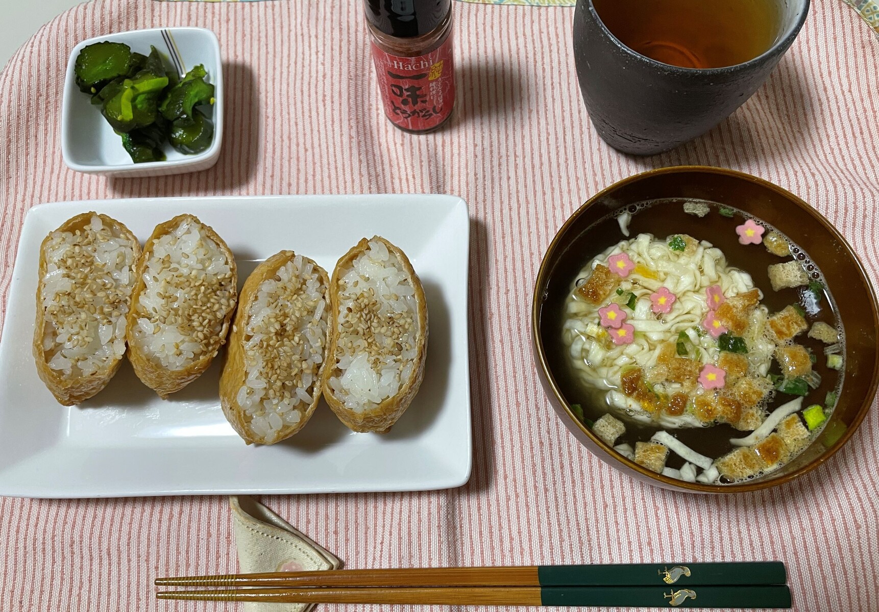 雑務を終えておうちに帰って風呂に入ってから🛀食事なんですが自炊する気力はもちろんありません、なのでカップ麺でも食べようかなって思っていたら👸姫様が「お稲荷さんあるよ🦊」ってこれは本当に感謝です!!