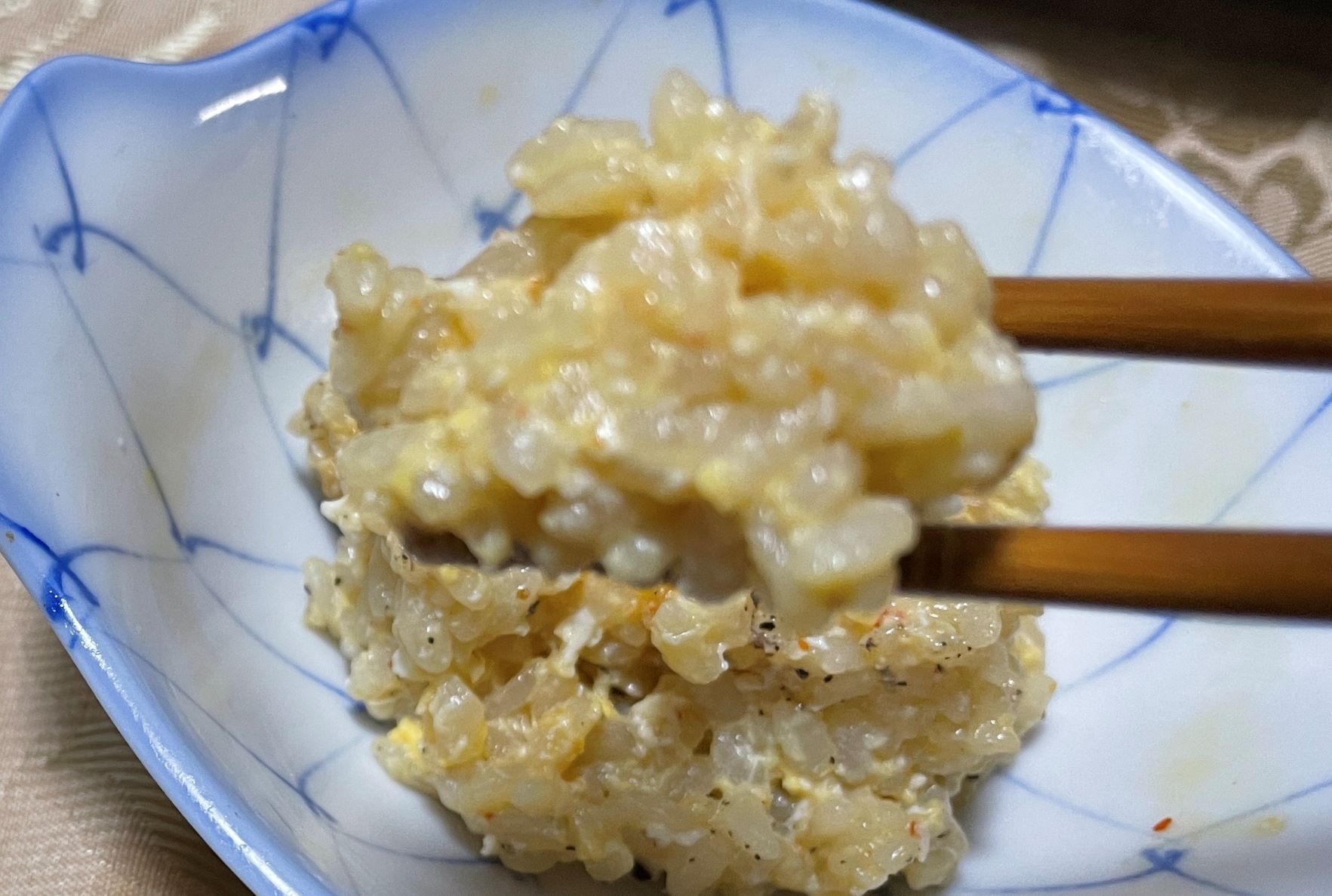 まだ少しすき焼きのタレが残っています、そうですシメの麺ではなくて山音238家の実家ではちょっと焦げのあるしっとり炒飯がすき焼きのシメでした、思い出しながら作ろう