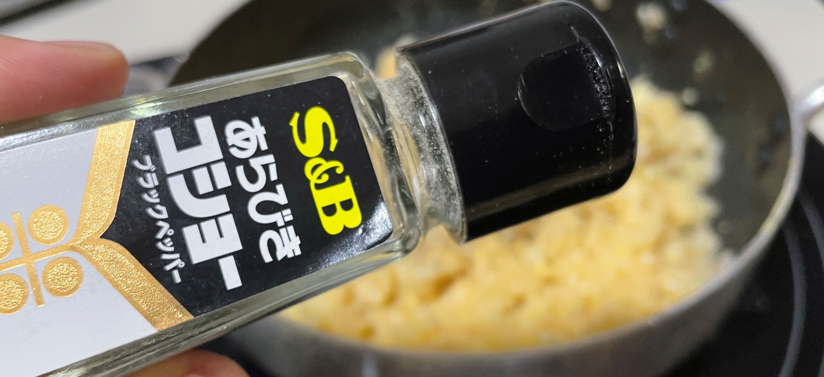 そしてまじぇまじぇしたらぁ~~味を確かめながら胡椒を入れます、本当はよく大衆食堂とかにあるテーブル胡椒がいいんですけど、今回は👸姫様のこの胡椒を使いましょう、たっぷりかけた方が美味しいんですよ💮