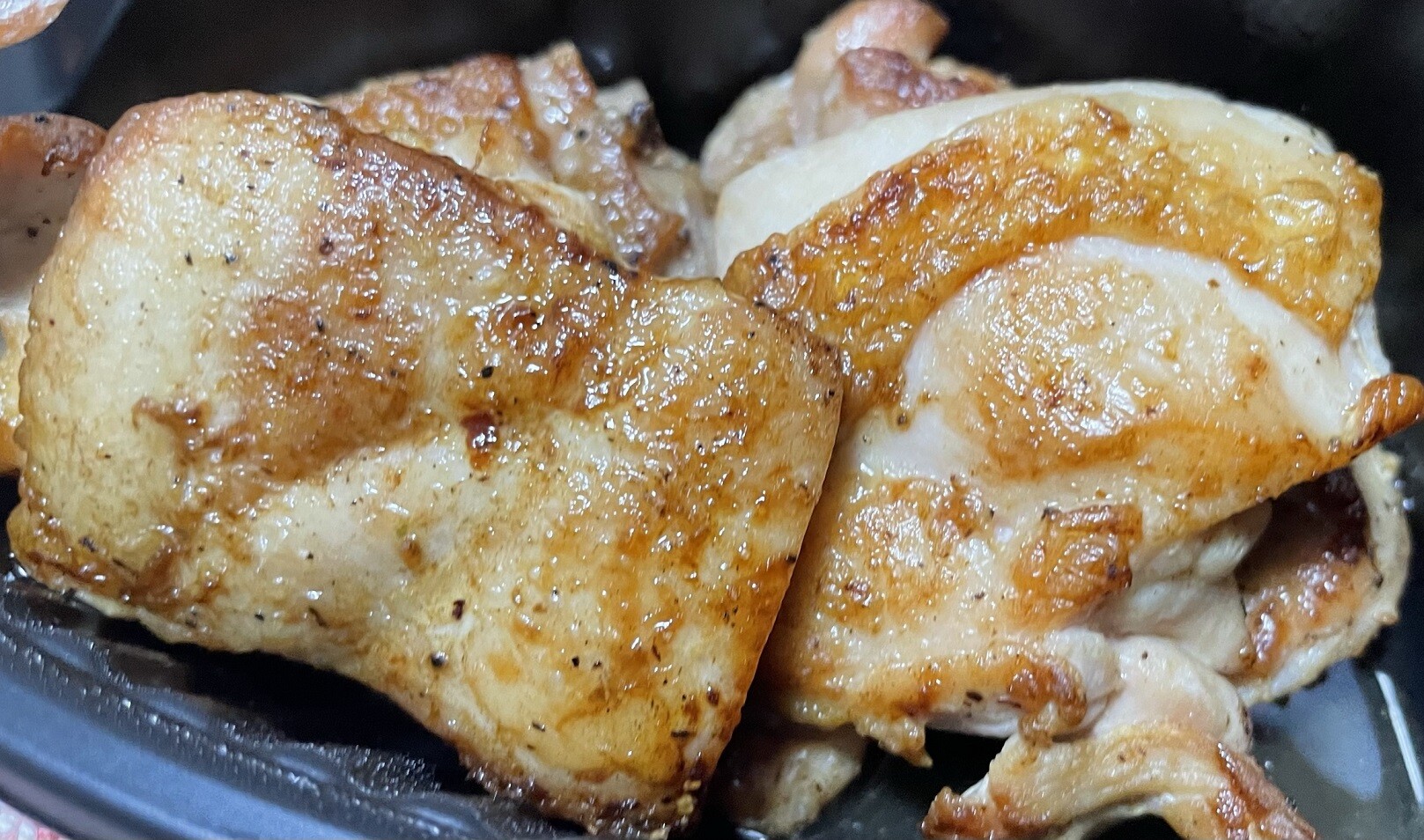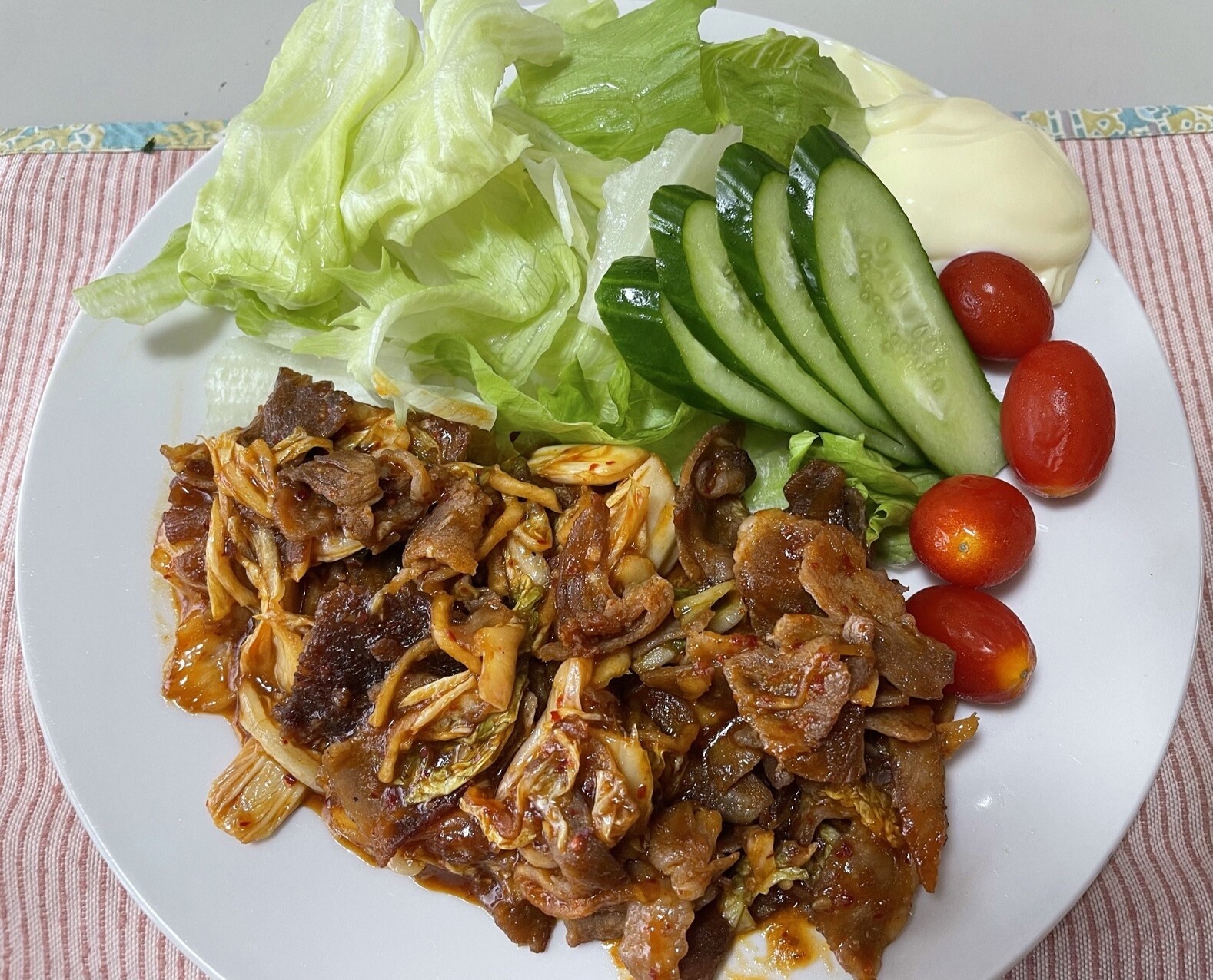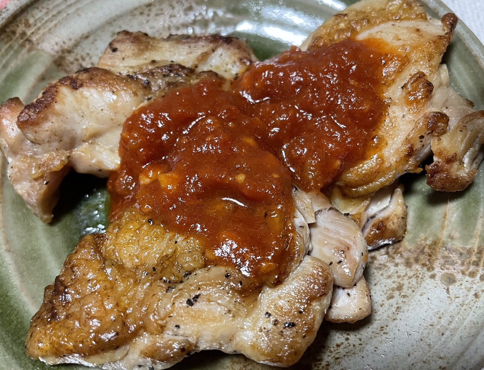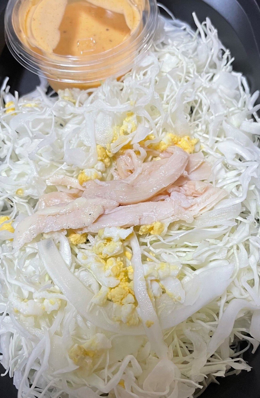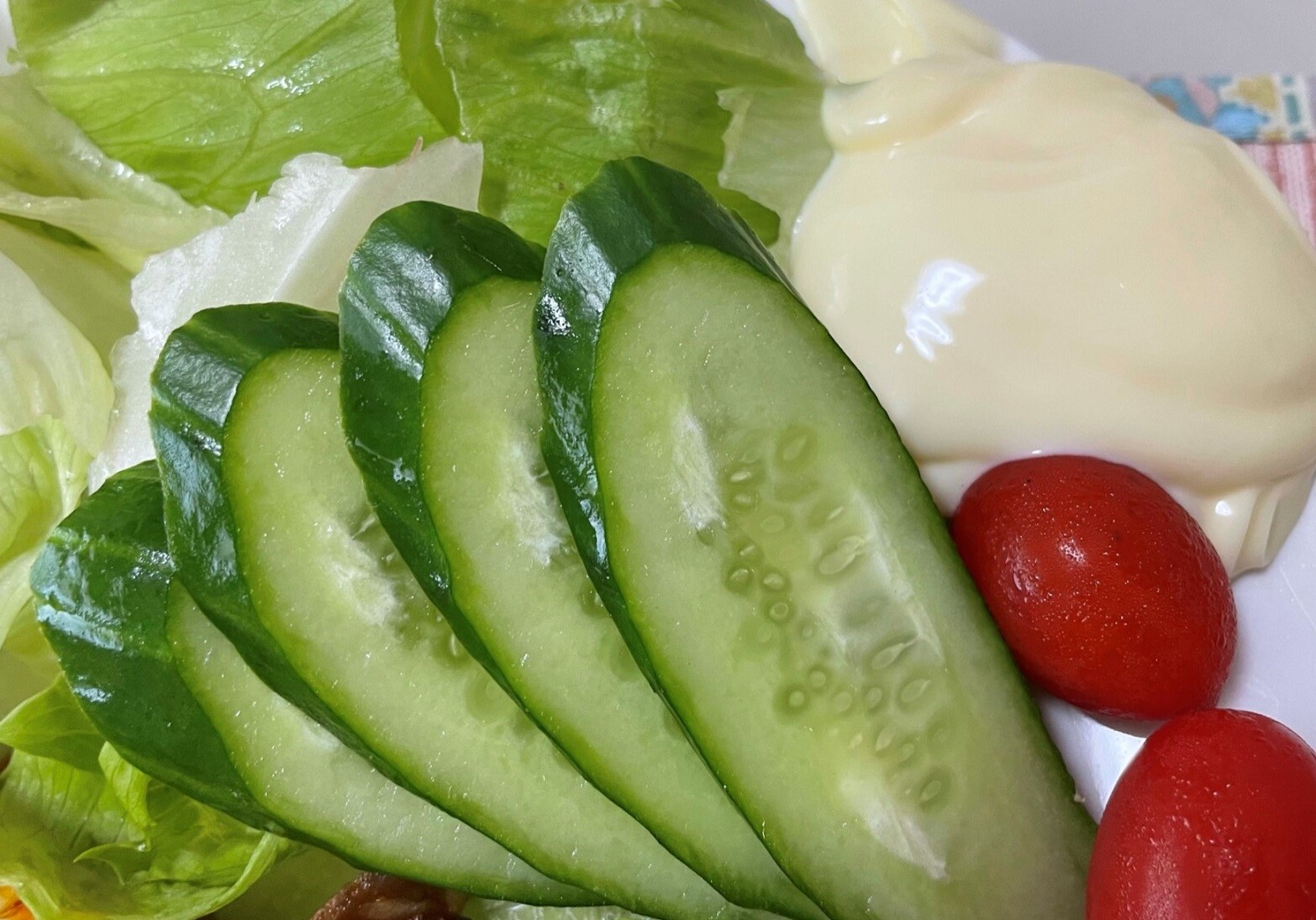 塩昆布とレタスのサラダに鶏肉の揚げ焼きです、唐揚げじゃありません
