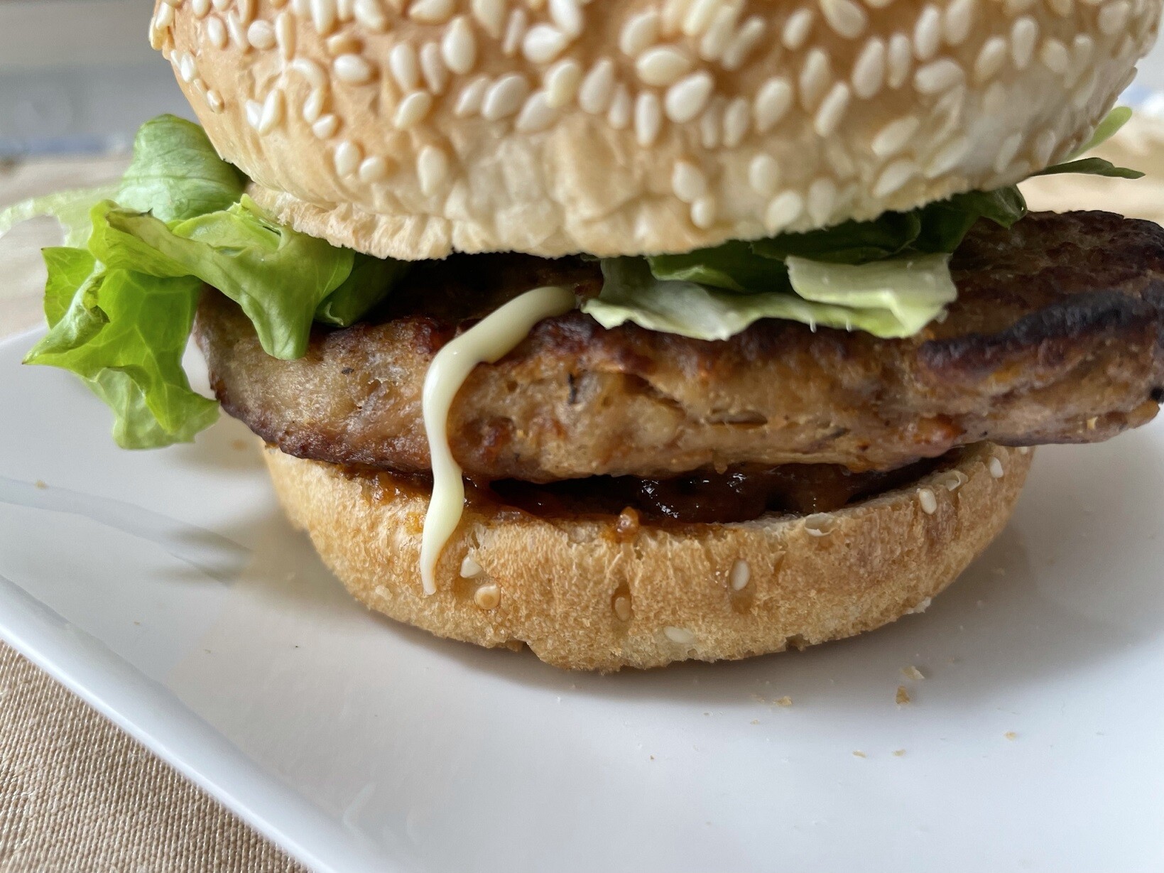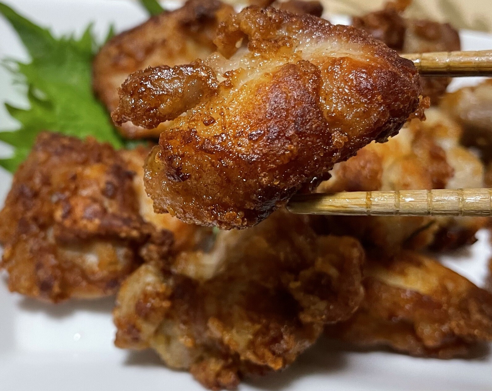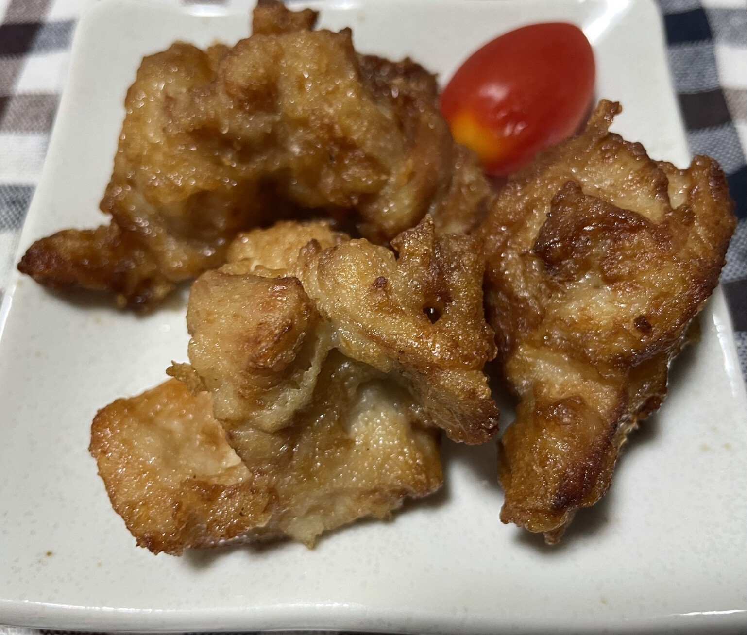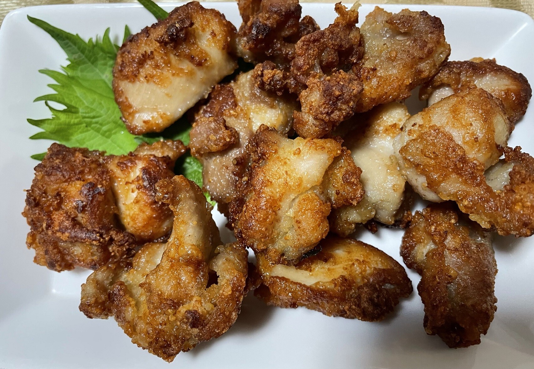 塩昆布とレタスのサラダに鶏肉の揚げ焼きです、唐揚げじゃありません