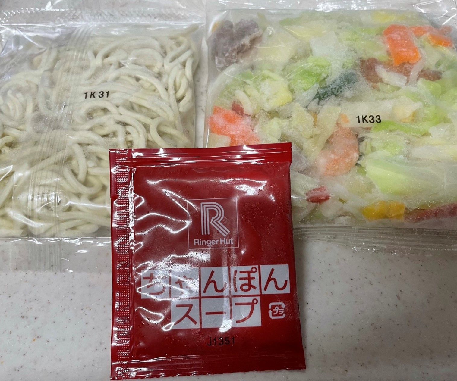 そうそう先日ネットの広告で購入したリンガーハットの商品が到着していたのでそちらを食べましょう、ちゃんぽんと皿うどんのセットなんですが、今回はなんとなくちゃんぽんにしました。冷凍で送られて来るので鍋と水だけ用意すればいいんです。
