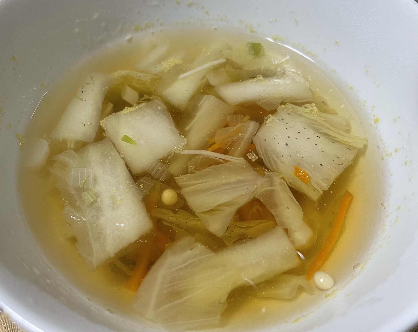 そしてなんか酔って作った野菜のスープも一緒に飲みましょう・・・