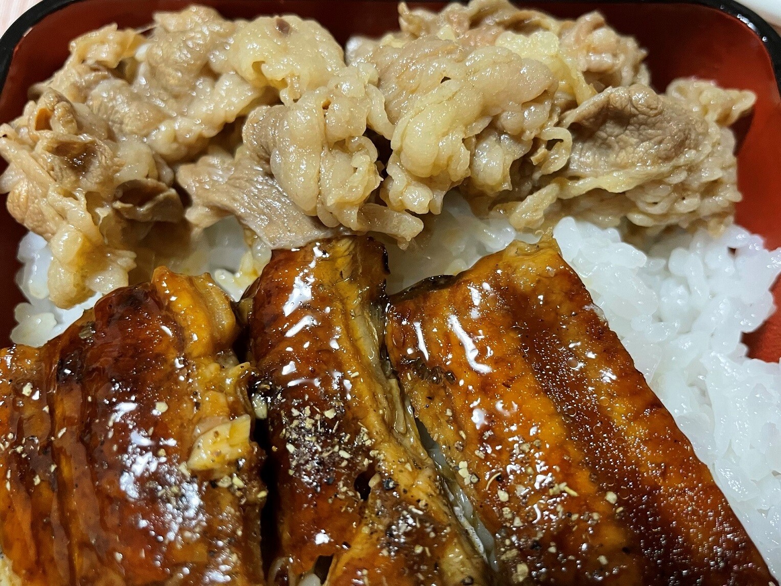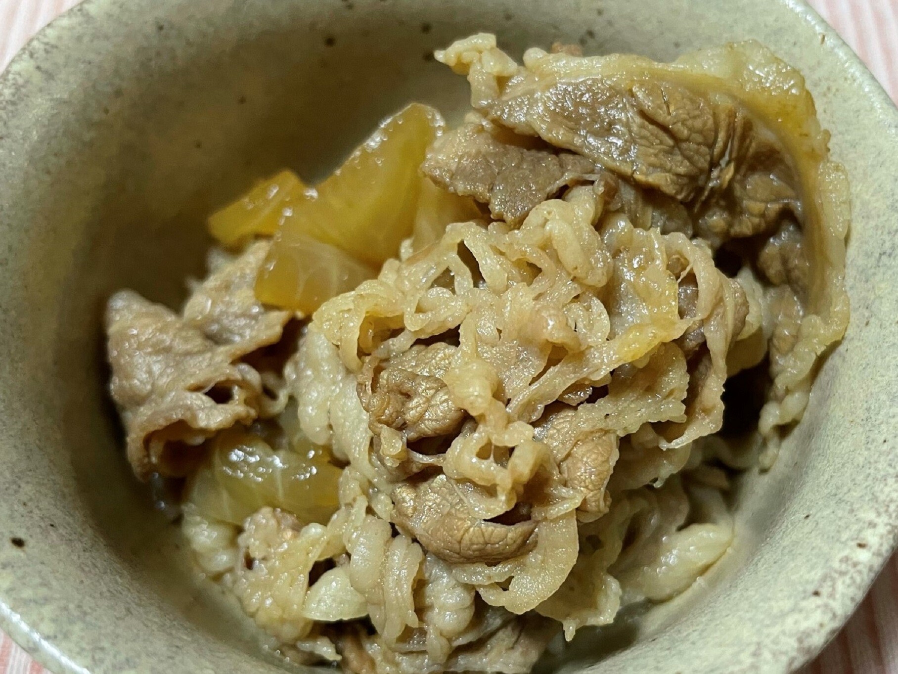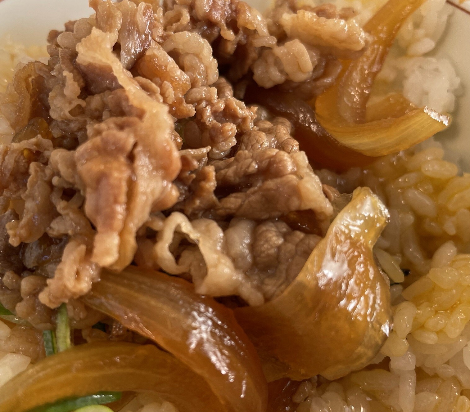 牛小鉢をごはんに乗っけて食べました、ソーセージもいい感じで美味しかったです、それより何よりもかなりおなかがいっぱいになりましたよ、こんだけ食べたら昼食いらないわ!!