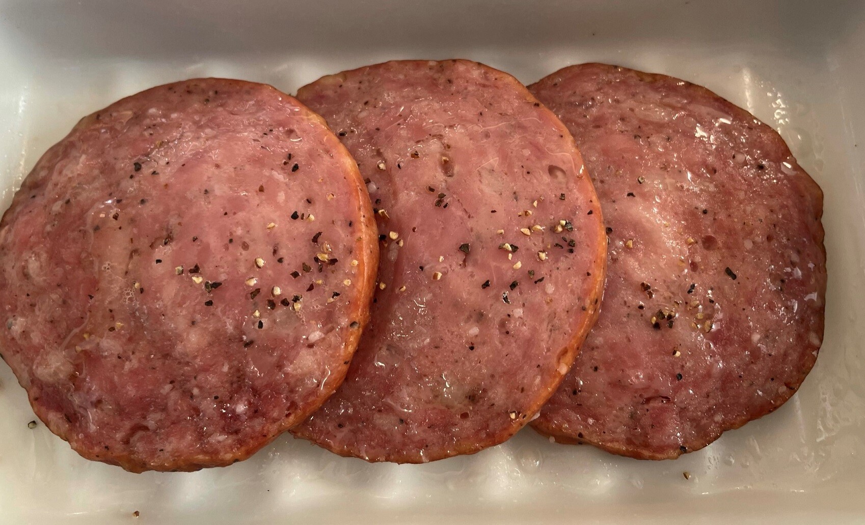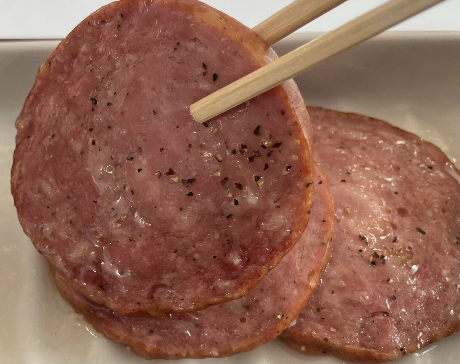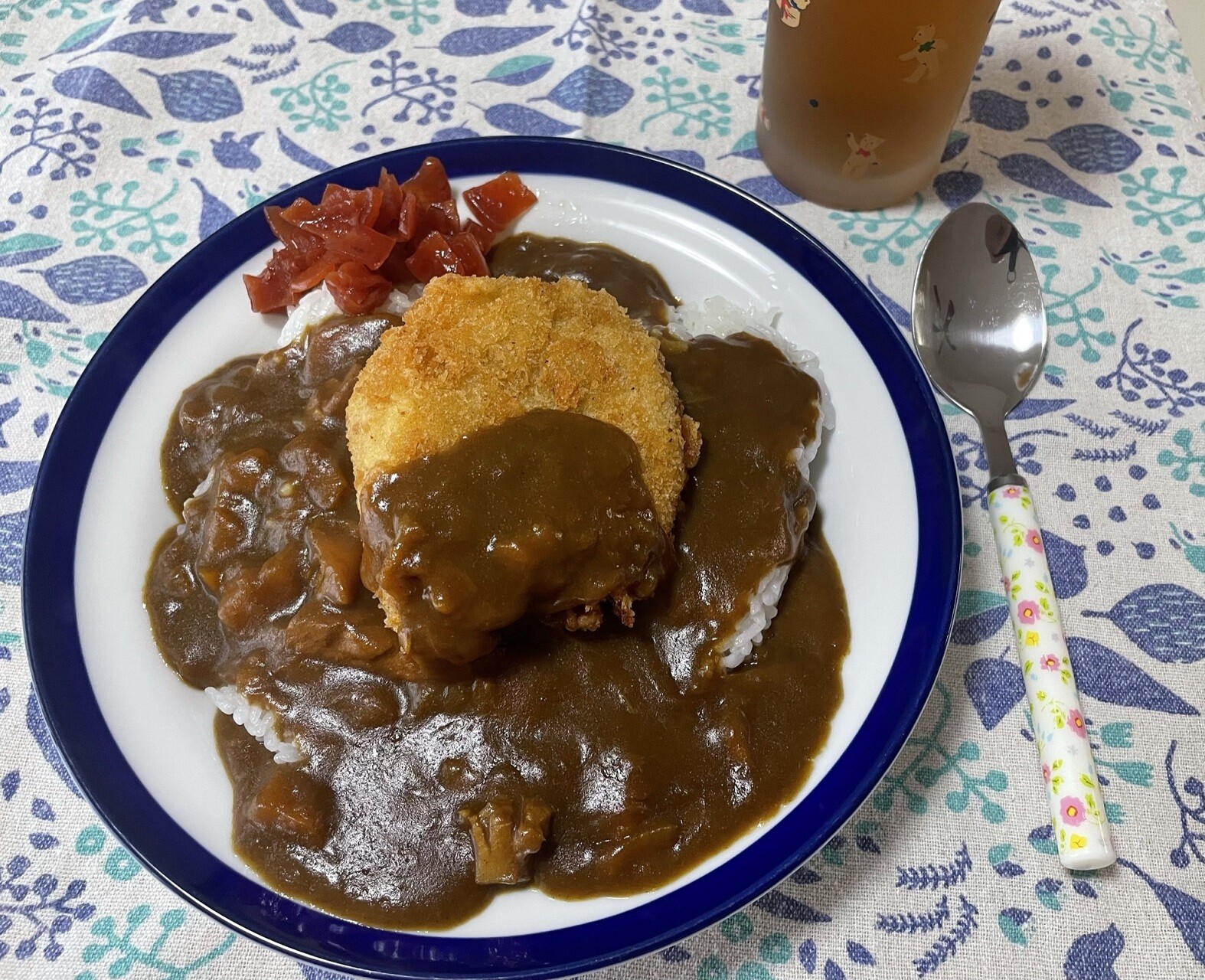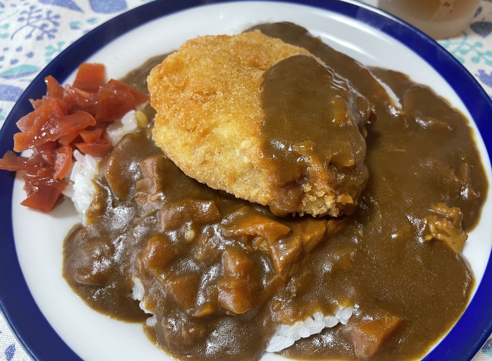ちなみにハムみたいに見えてるのがソーセージですよ、どういう風にして食べるかな、生玉子をお新香にチェンジした方が良かったかな・・・