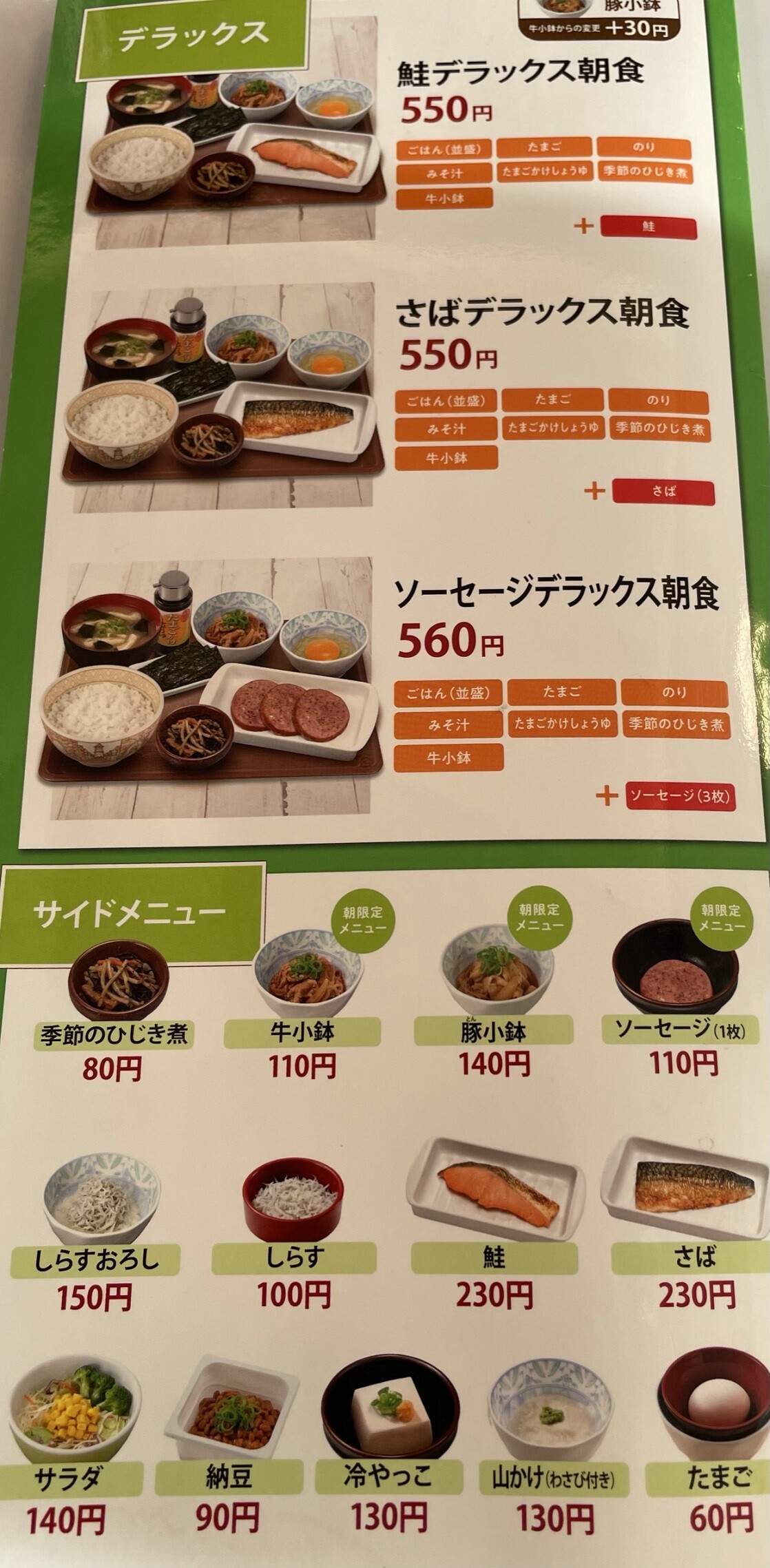 300円未満で食べれる朝定食があるんですよね、コスパで選ぶか、それとも満足感で選ぶか・・・