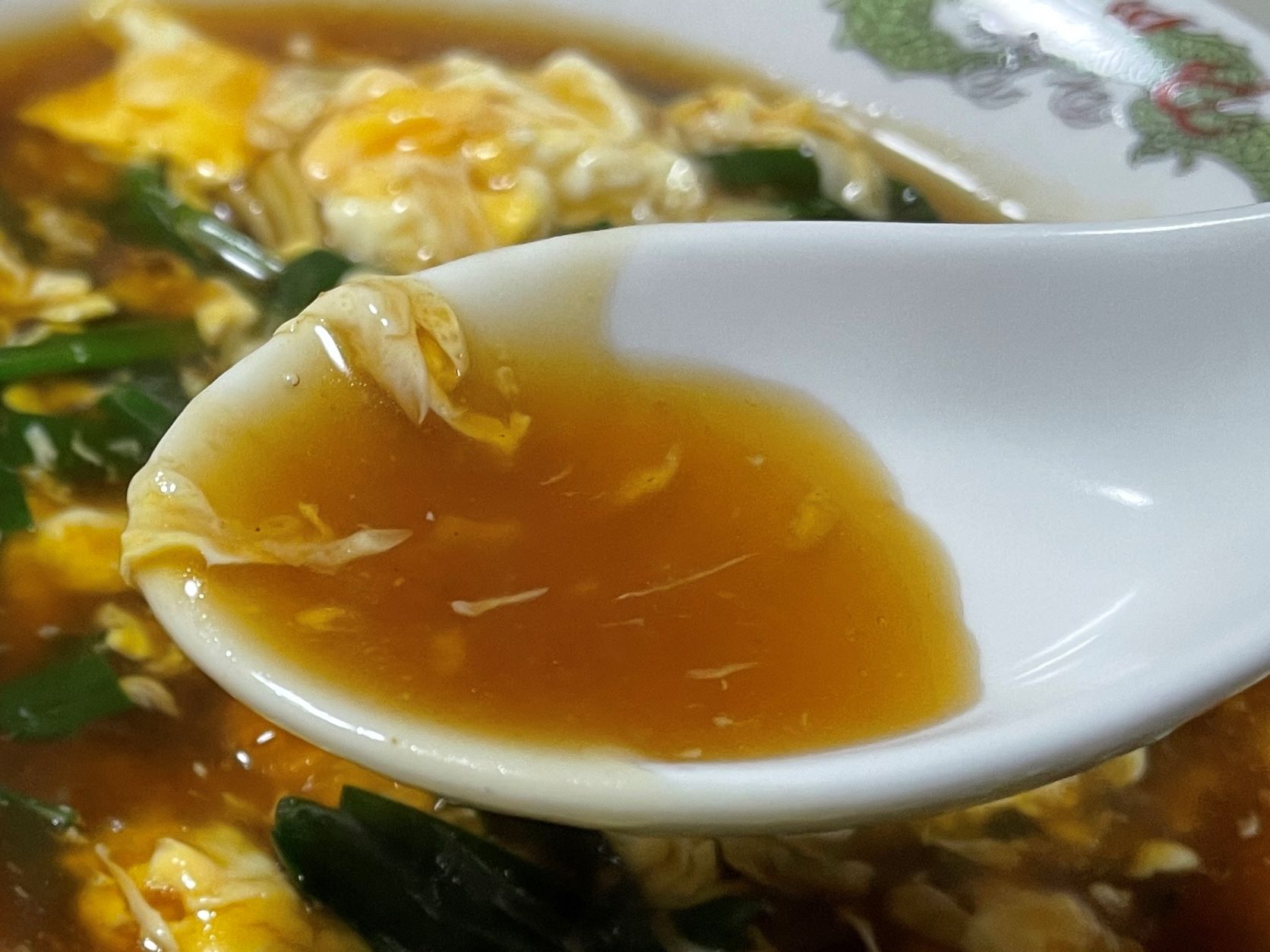 とろぉ~りあんかけにふんわり玉子とアクセントのニラを入れました。