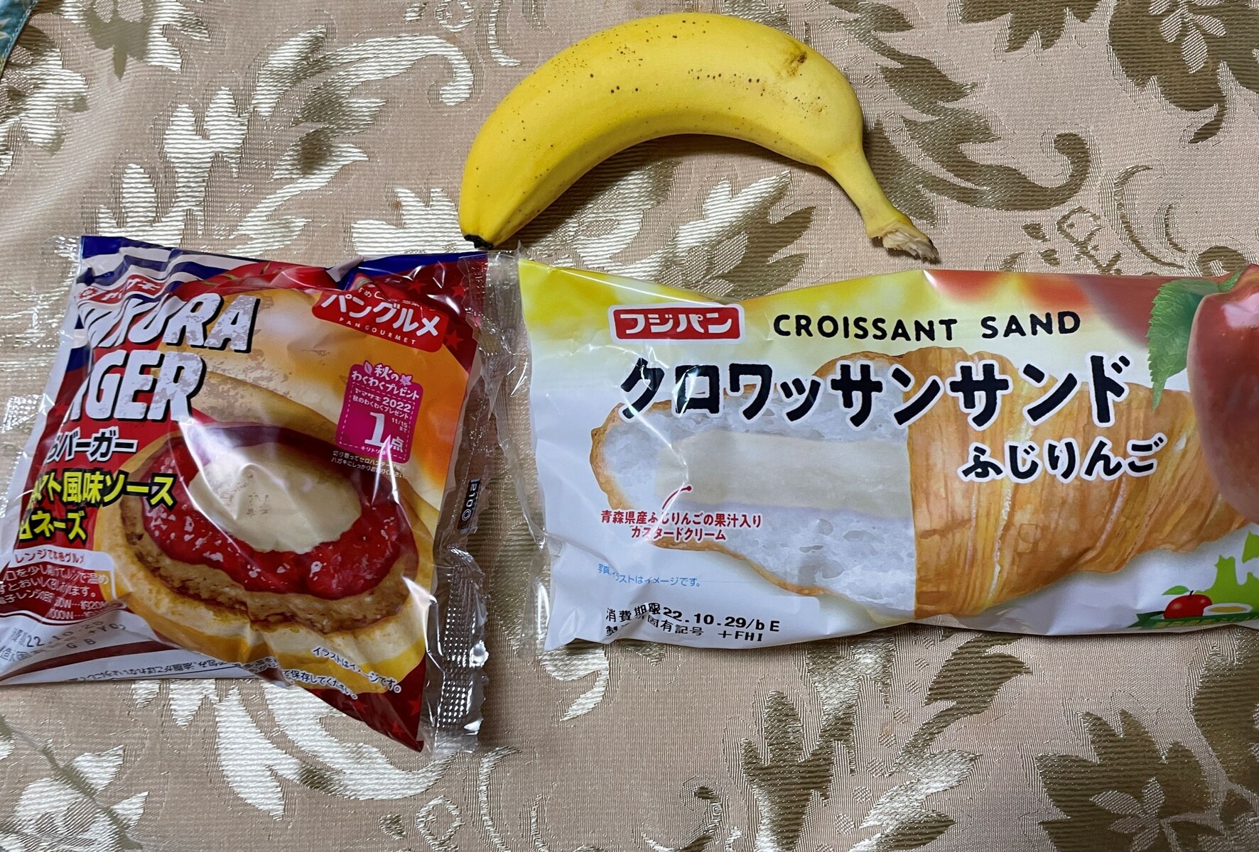 この日もふっくらバーガーを食べますよ、そして甘いパンも頂きましょう、もちろんバナナも食べなきゃです