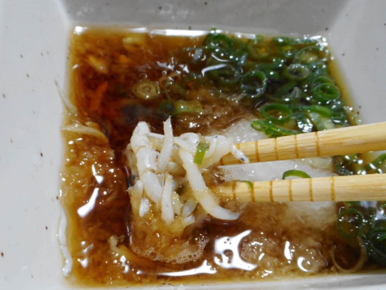 なんと、今回はツユにしらすと大根おろしを入れています。