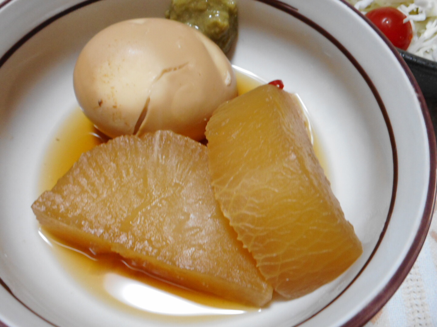ヘルシーなおつまみですよ🥒大根と玉子の煮物とサラダにキュウリを簡単に漬物みたいにしました。