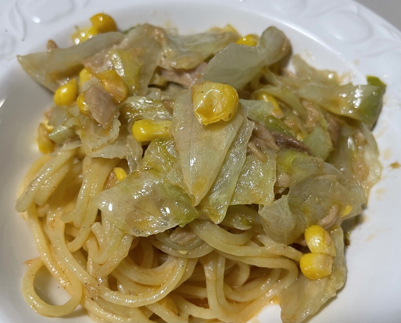 👸姫様の漬けたぬか漬けをアレンジしたもの、そしてレタスとコーンとツナのパスタに