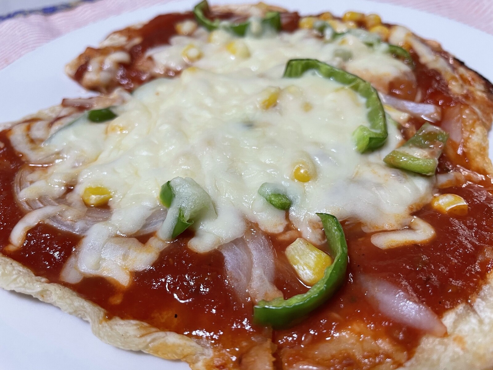 手作りの生地なので歪な形をしてますが、カリッとクリスピー風に焼けて美味しそうですwktk
