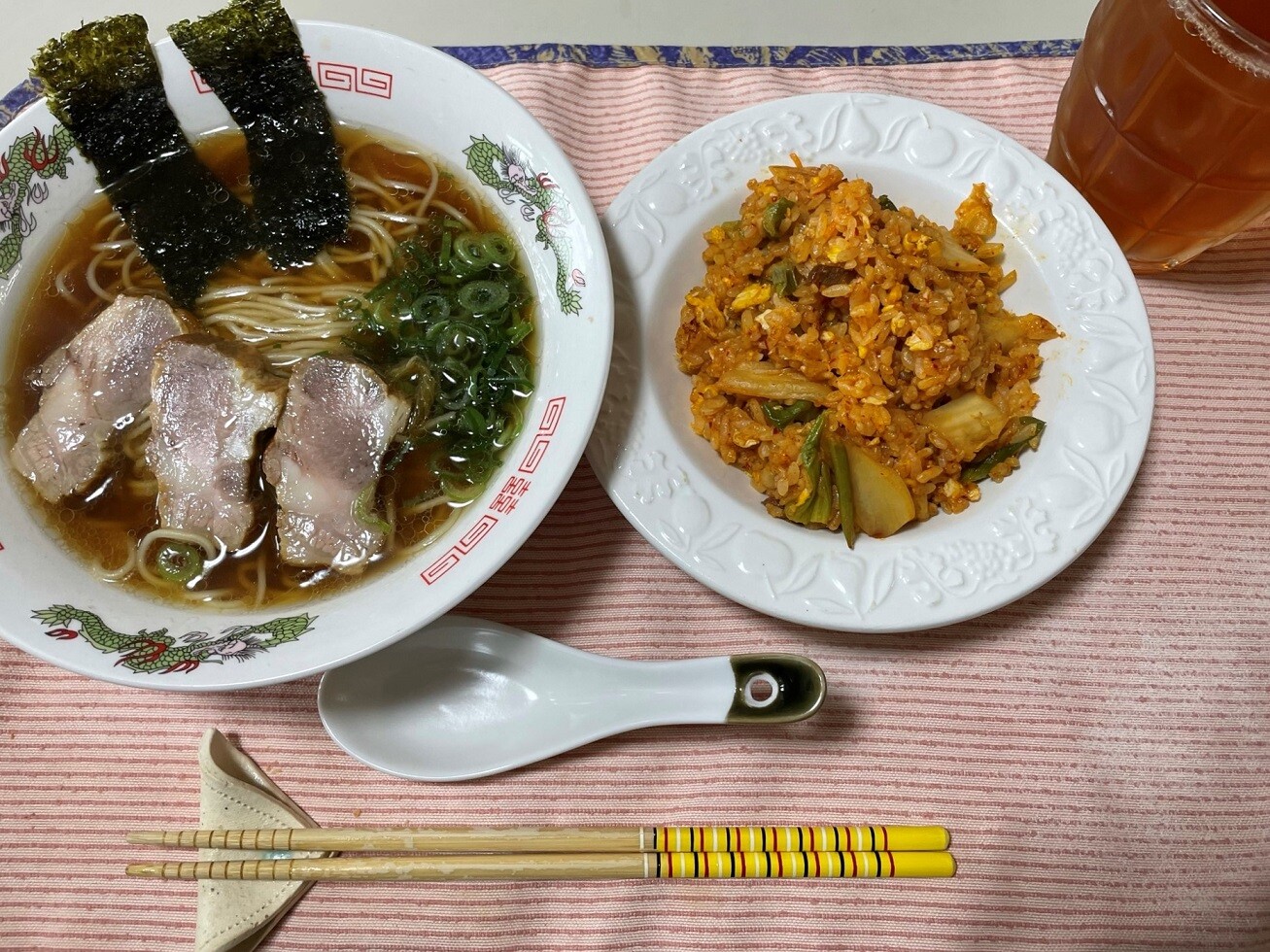 ゆっくりしてたら👸姫様が「でぶぅ~~おなかすいたぁ~~」って言ってます🐷ふ~ちゃんもおなか空いたので昼食にしましょうか、雨だしなんか温かい物にしましょう₍₍ ◝(^O^)◟ ⁾⁾ ふっふっふーキムチ炒飯とラーメンにしましたよ!!