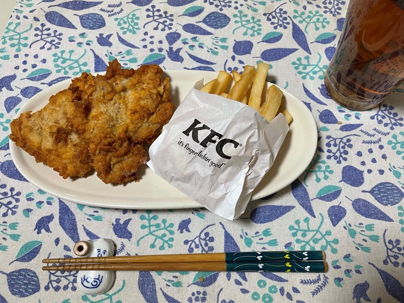 疲れているのにちゃんとケンタのチキンを買って帰りとにかくシャワーを浴びたら🚿