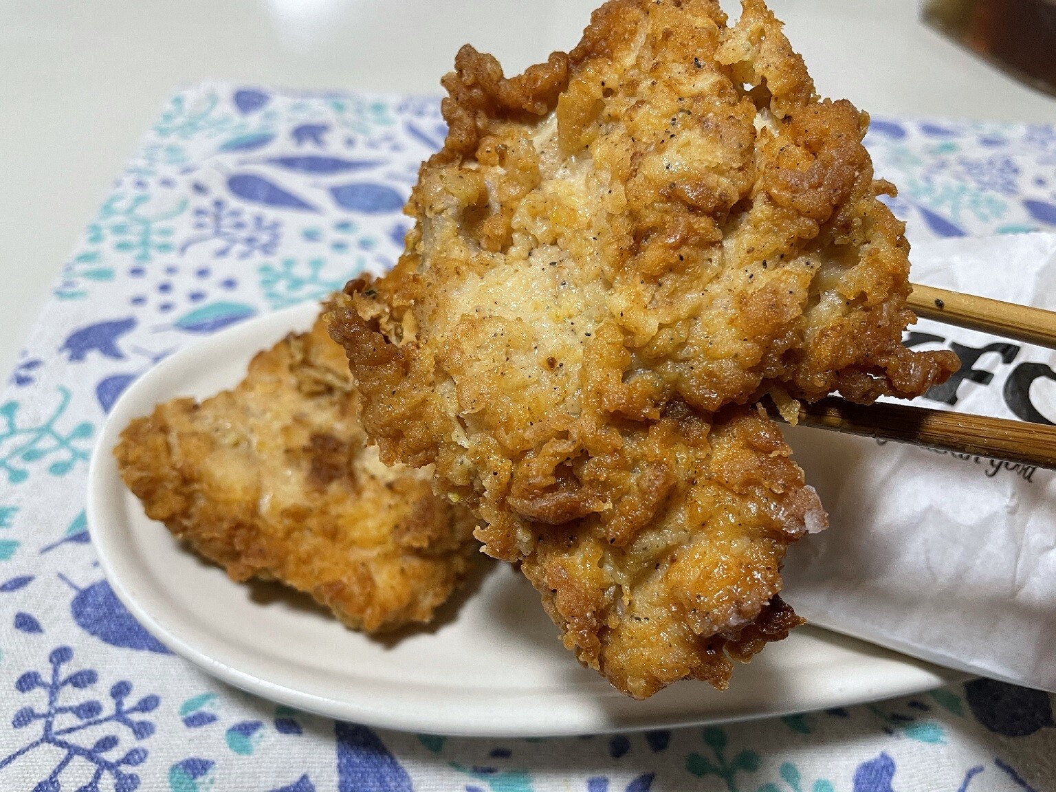 正直ケンタのチキンでこの骨無しチキンが一番食べやすいし美味しいので個人的には一番好きかな👸姫様も同じ事を言ってます、オリジナルチキンも美味しいのですが骨が面倒くさいので・・・