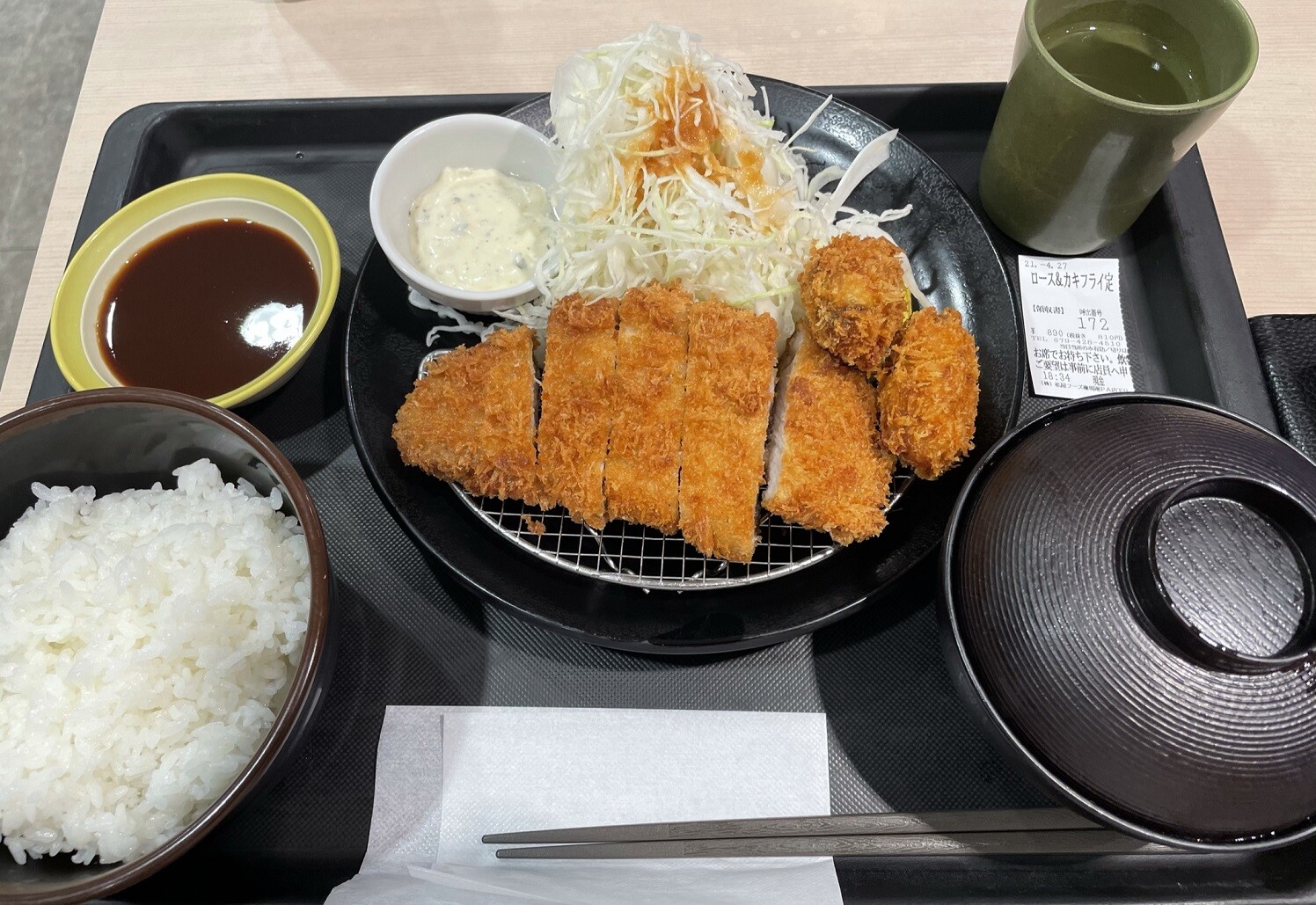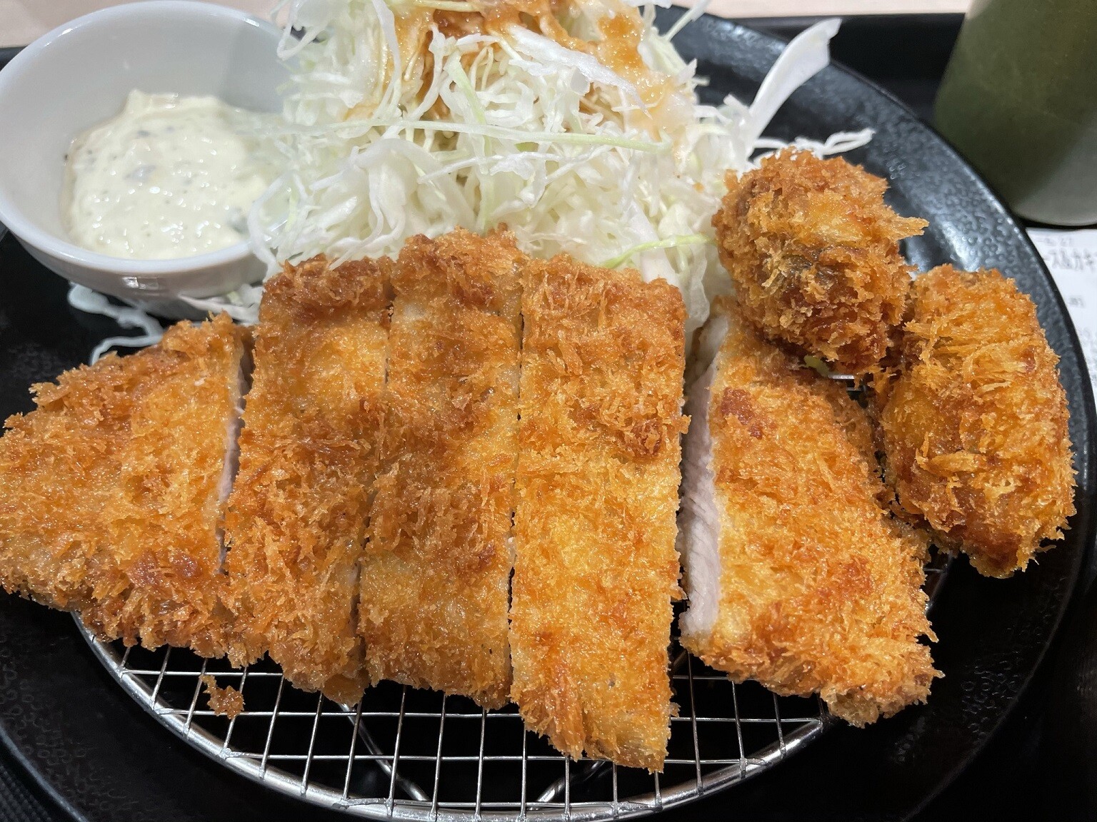 カキフライはこの冬にあまり外食で食べてなかったので今の期間に食べておきましょう、もちろんトンカツは外せませんからね