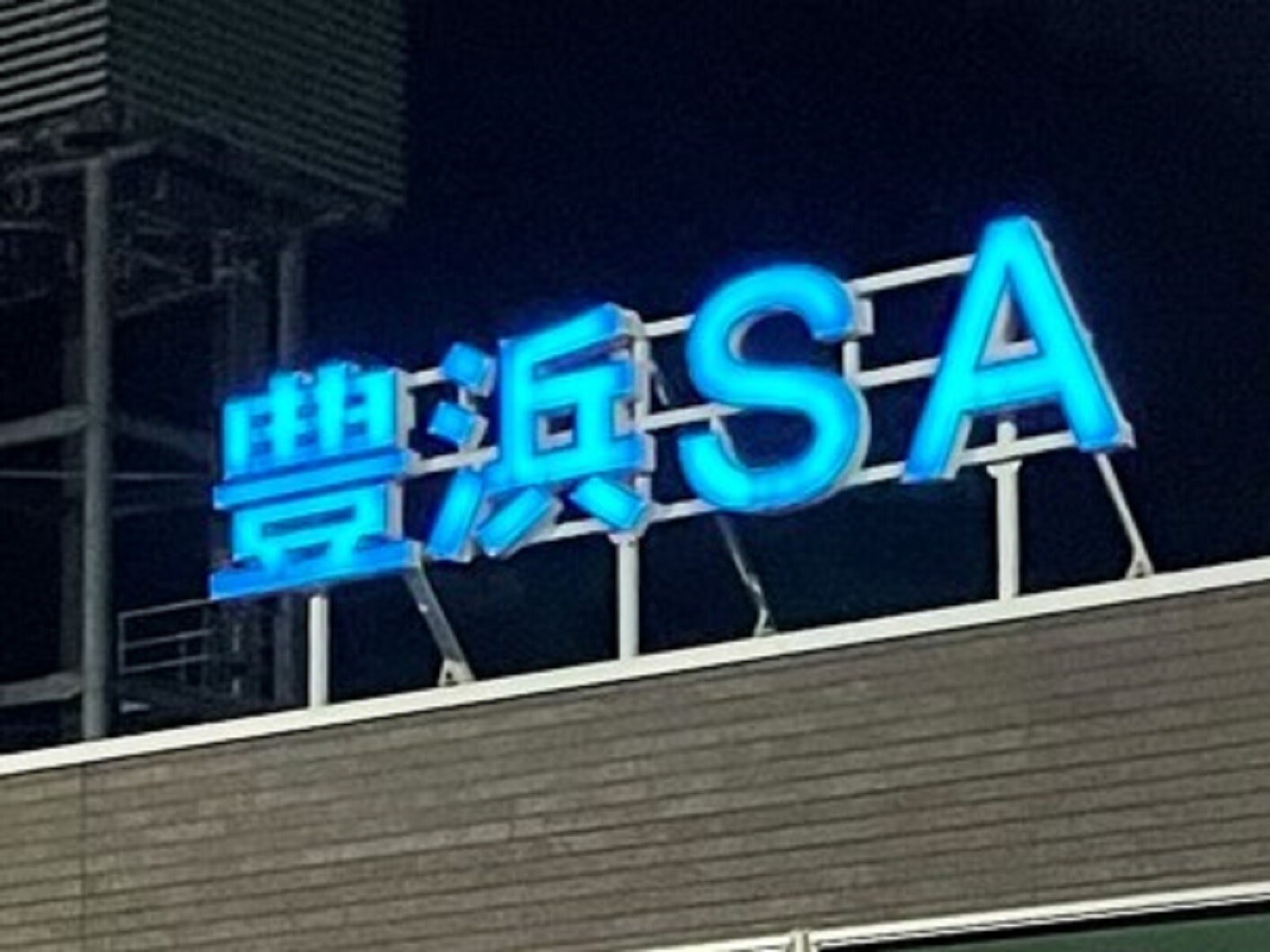 そうして暗くなってからの夜間走行ですε=ε=ε=┌(;´゚ェ゚)┘そして目的のいつもの豊浜SAに到着しました🏁