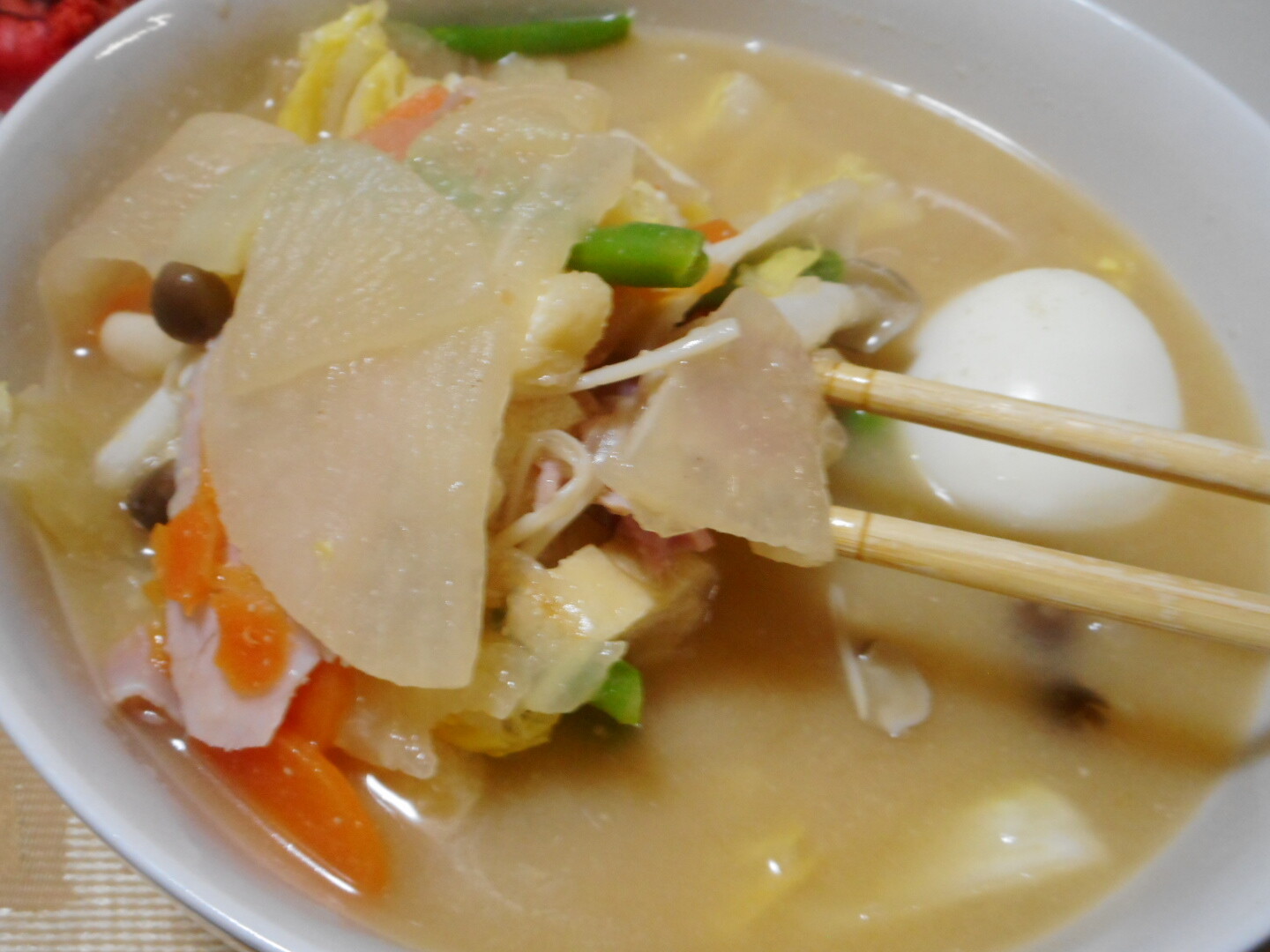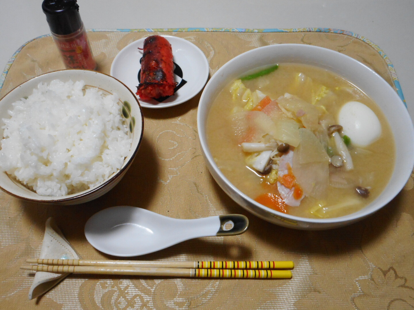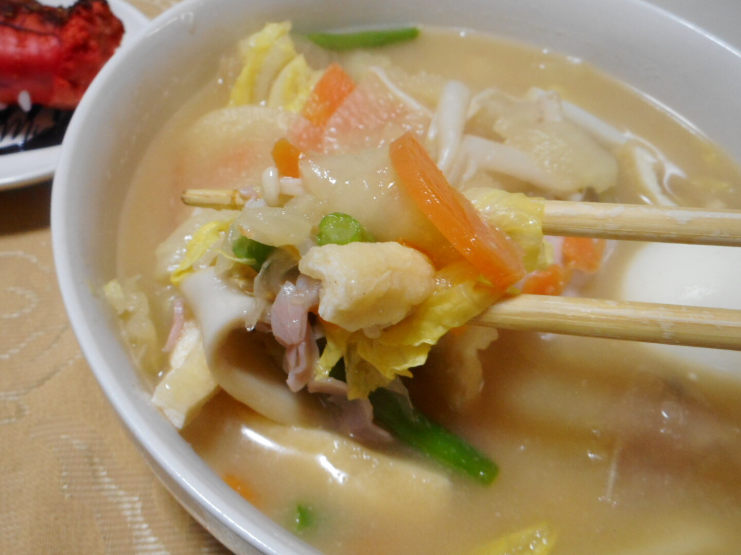 🐷ふ~ちゃんが作った焼飯は味が薄かったです、でも野菜たっぷりちゃんぽんの味が良いから焼飯の薄味をフォローしてくれました。