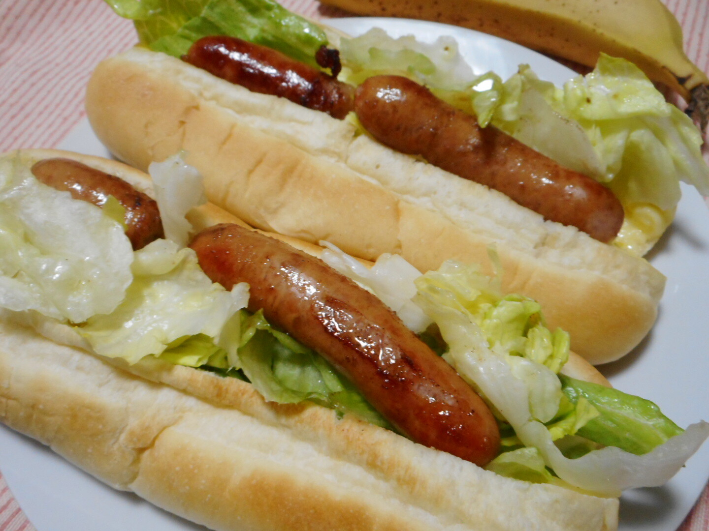 オムレツにウインナーにバナナとチーズトーストとカフェオレです。