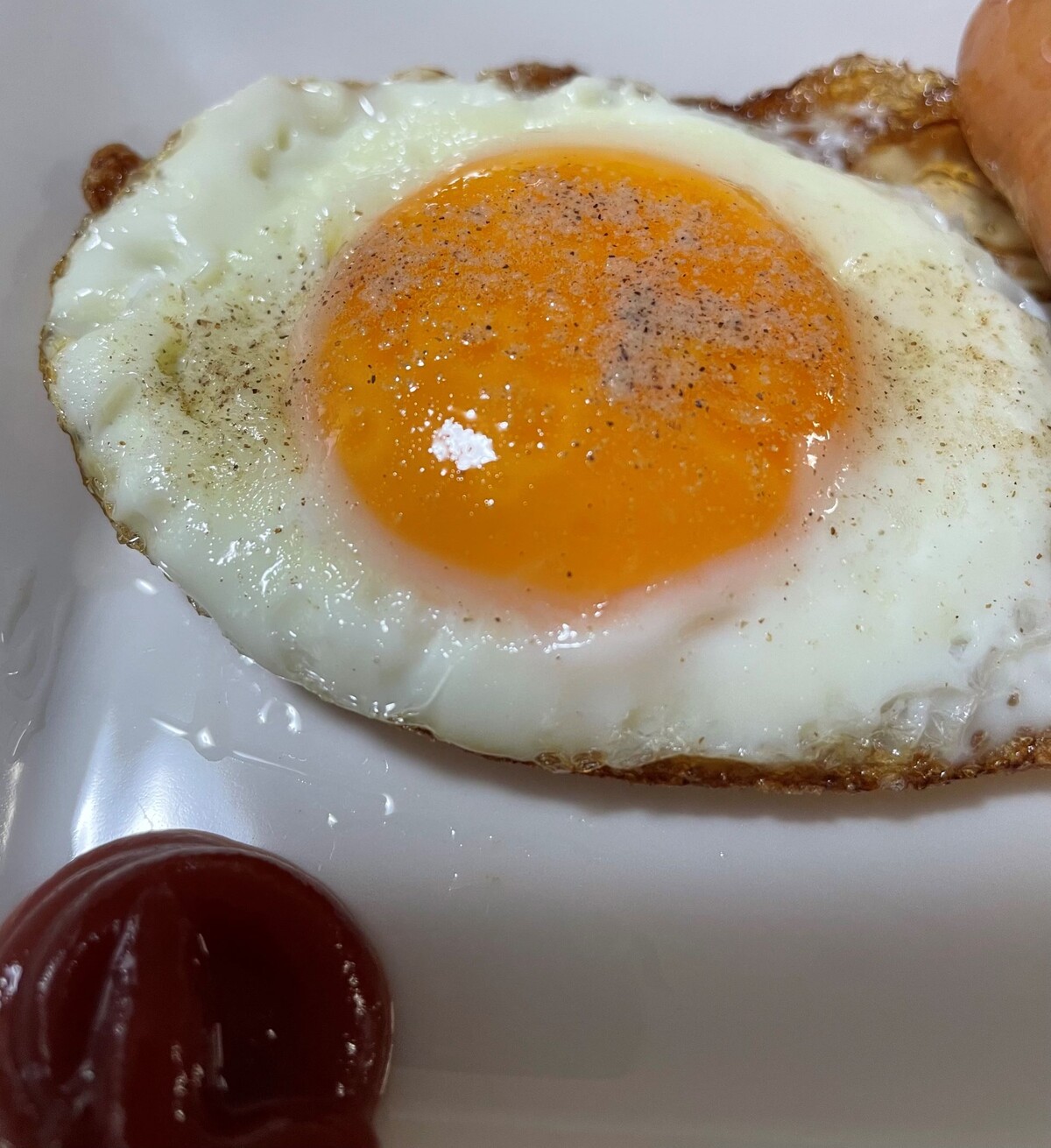 飲物はハニーミルクです、ホットミルクのハチミツ入りの事ですよ、それと目玉焼きにシャウエッセンです、目玉焼きにはケチャップを付けて食べます