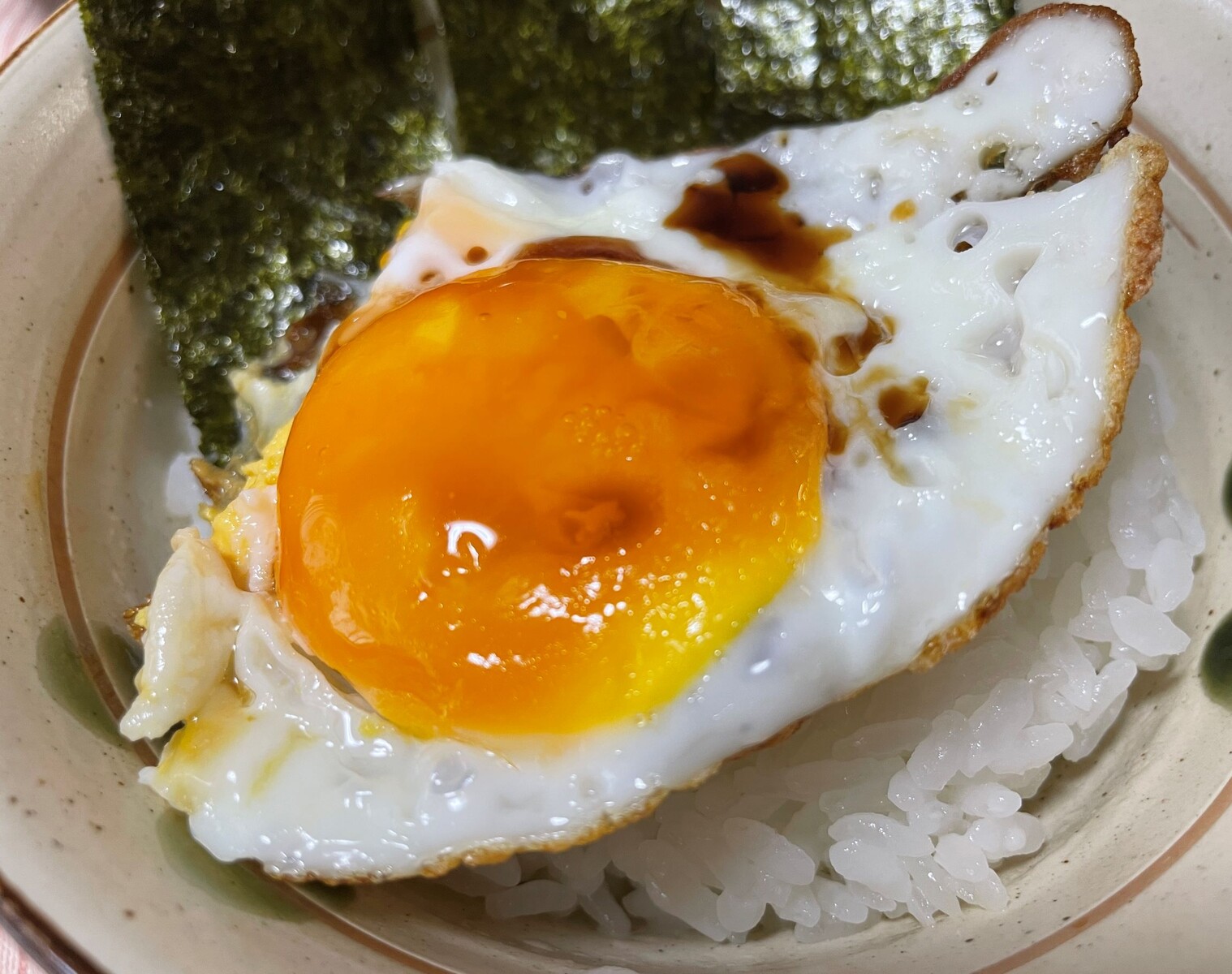 目玉焼きは最後に玉子焼き丼にしました、結局お米は美味しくは炊けてなかったです、なんかイマイチなんですよね👸姫様がお米を炊くと美味しいのに・・・