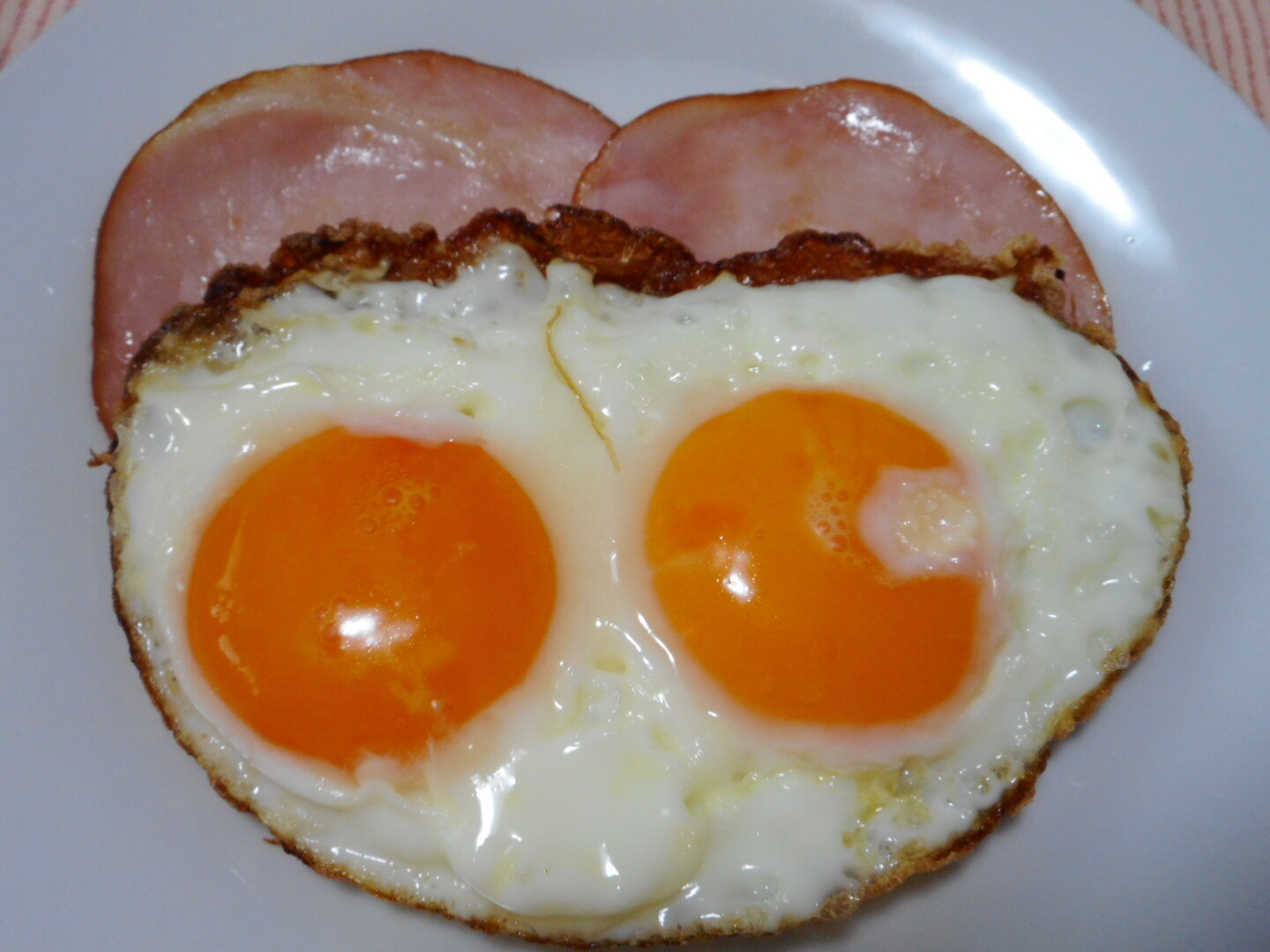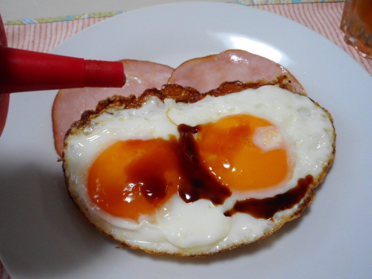 ハムも軽く焼いて目玉焼きには醤油をかけて食べましたよ。