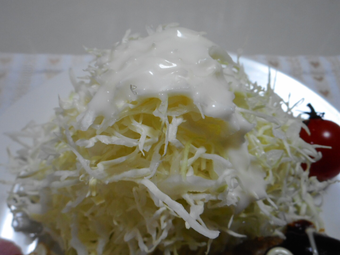 その代わりにタワーのように盛りつけたキャベツの千切りがあるので、これでおなかが満腹になります。
