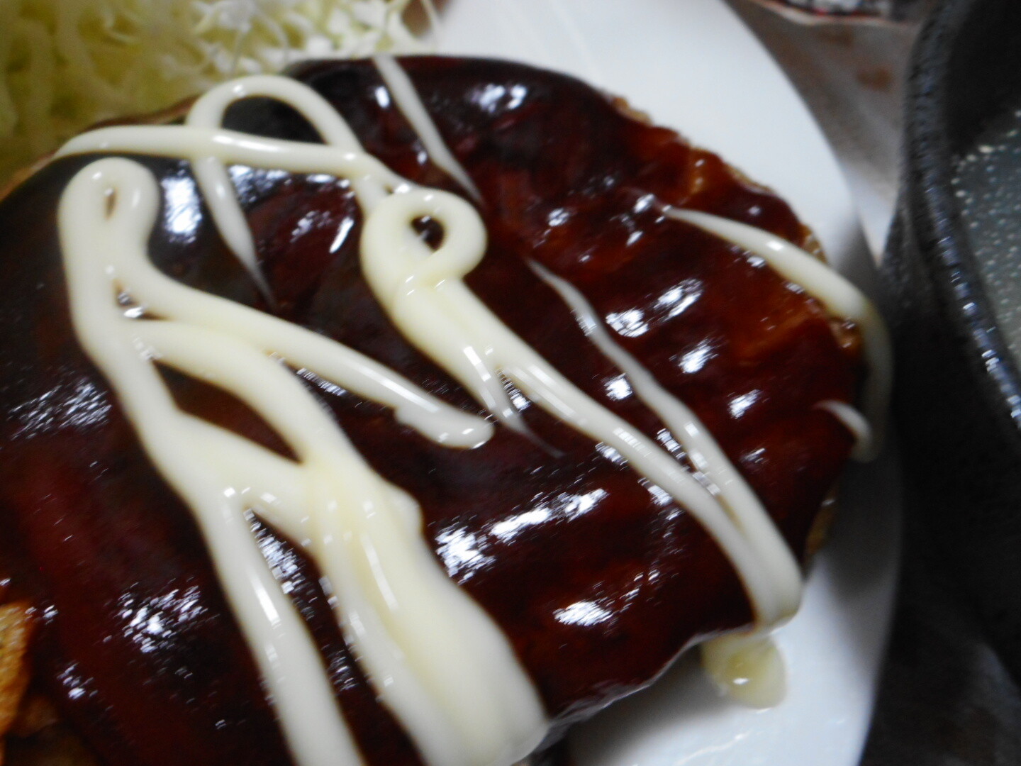 ハンバーグは今回は焼いた後のフライパンにソースとケチャップを加えてまじぇまじぇしてからハンバーグの上にかけて仕上げにマヨをぴゅーとぶっかけました