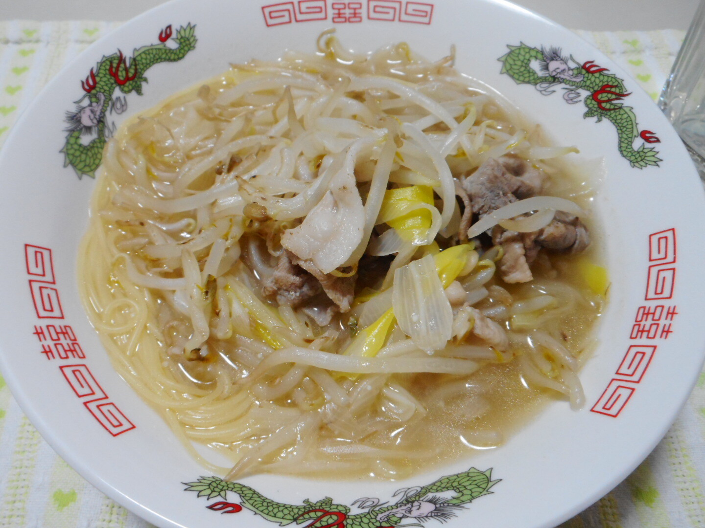 少し前に👸姫様が間違えてすごい細いスパゲッティーを買って来たので、ラーメンみたいに出来ないかと思い作りました。