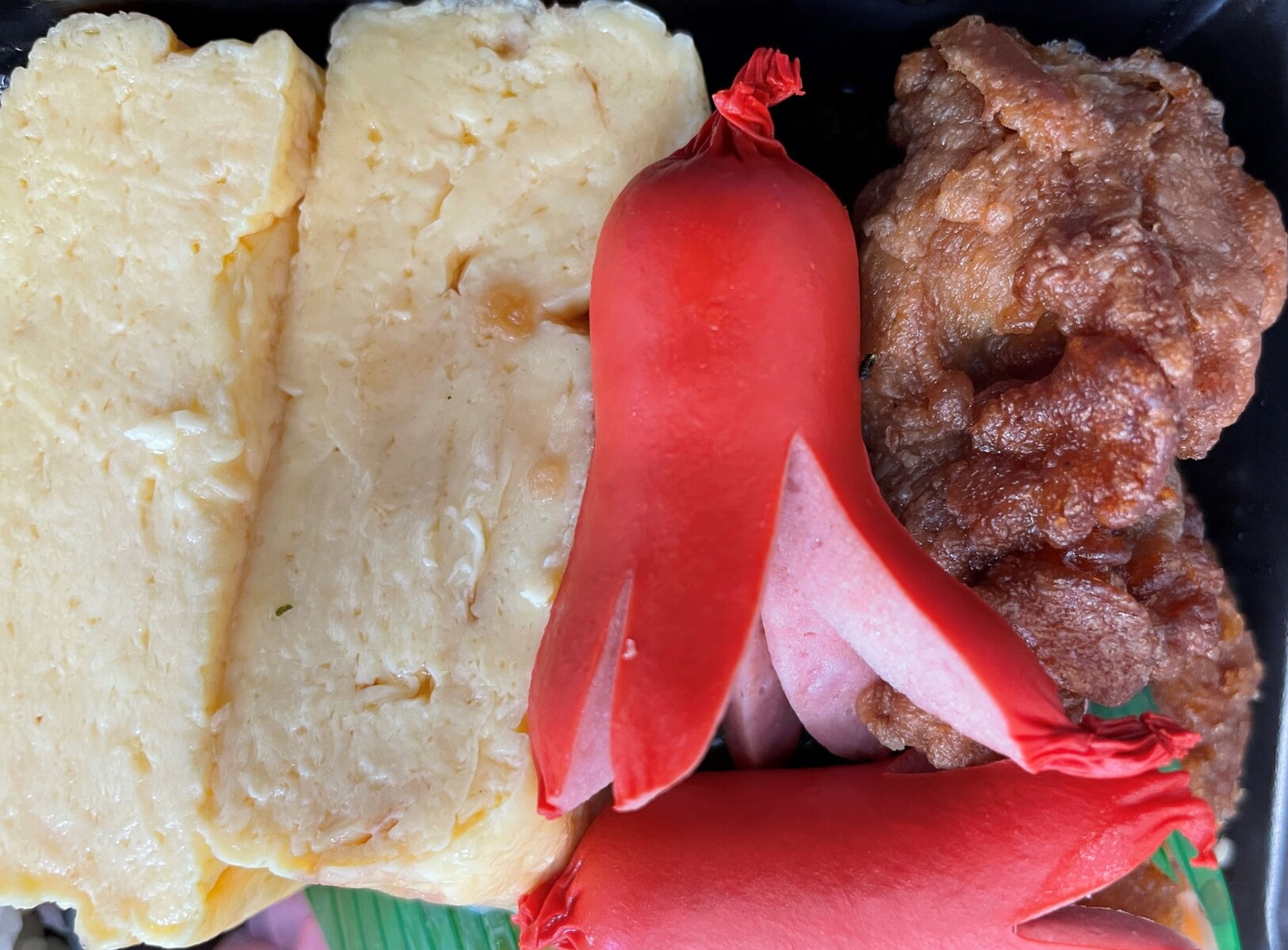 それでは頂きましょう!!弁当はごはんの量も多いしみんなが好きなおかずばかりです、こんな弁当を🐷ふ~ちゃんの母親は作ってくれなかったかな・・・