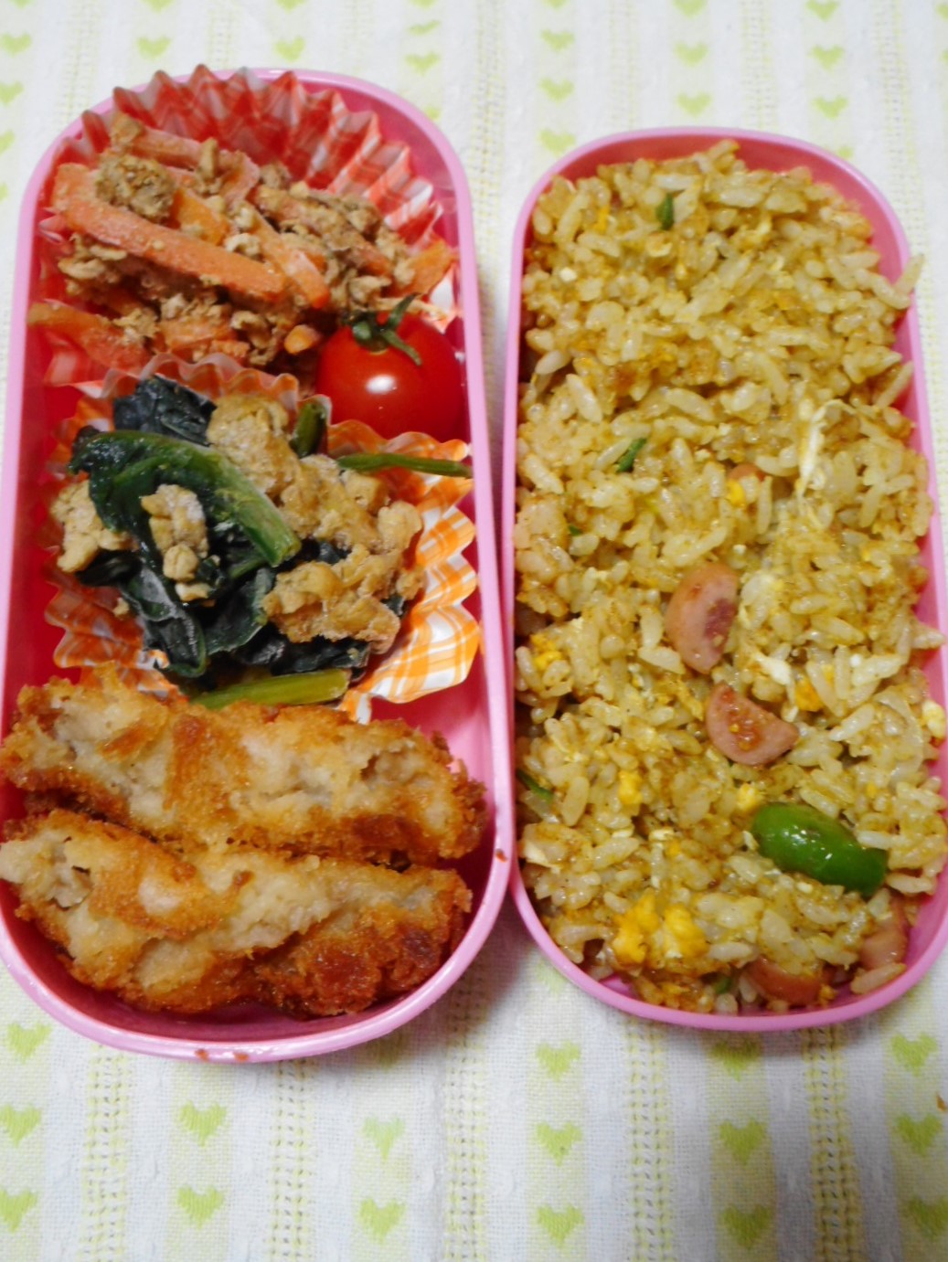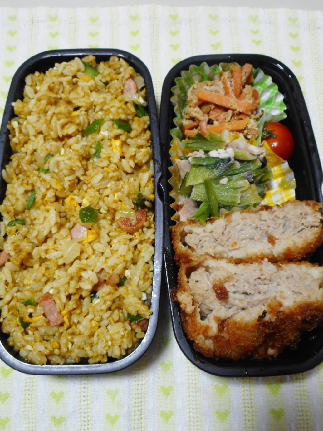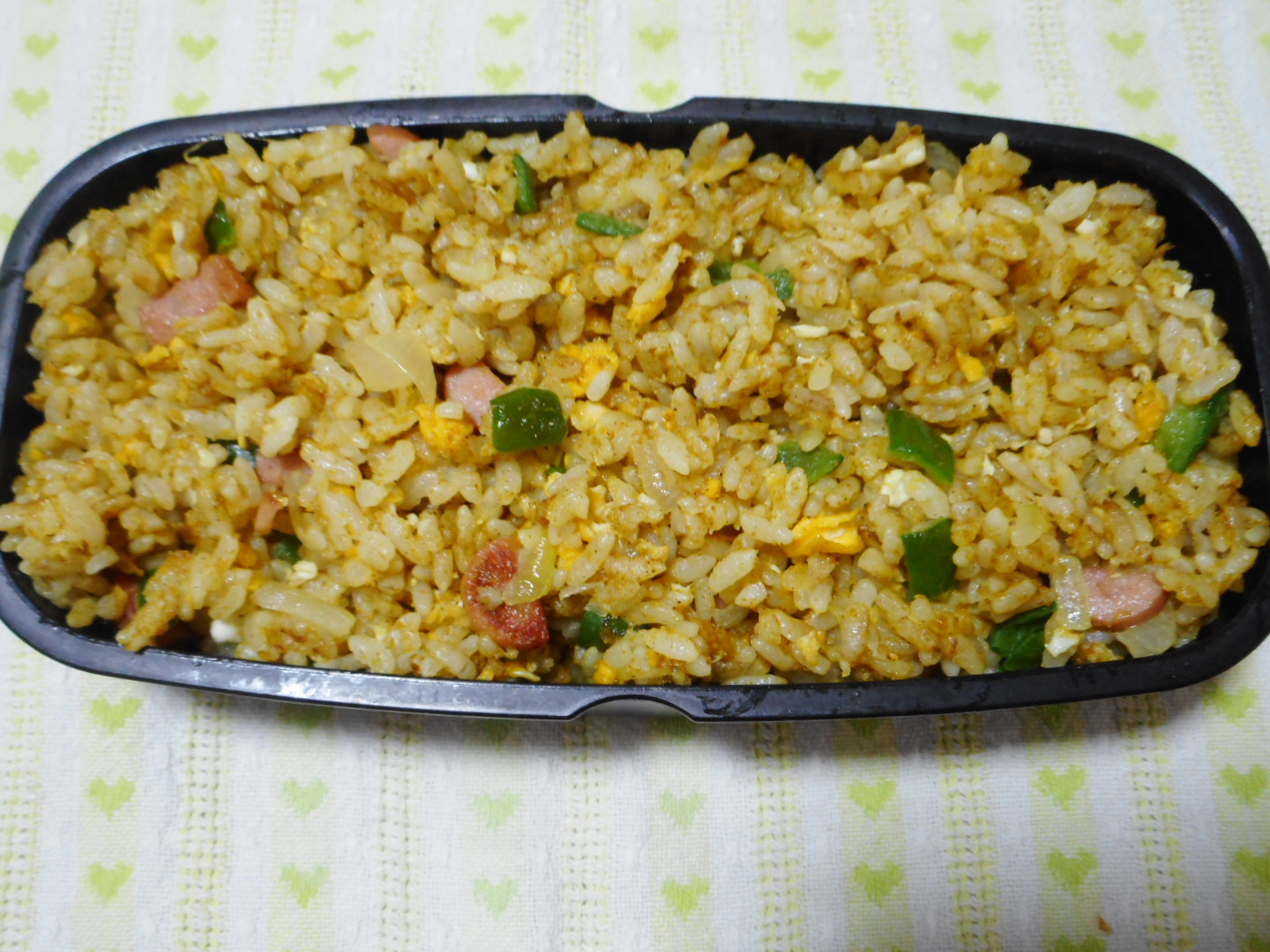 ふ~ちゃんが学生だった頃の喫茶店とかではカレー味のチャーハンの事をドライカレーと呼んでました、今回はそんなドライカレーの炒めごはんの弁当ですよ🍱