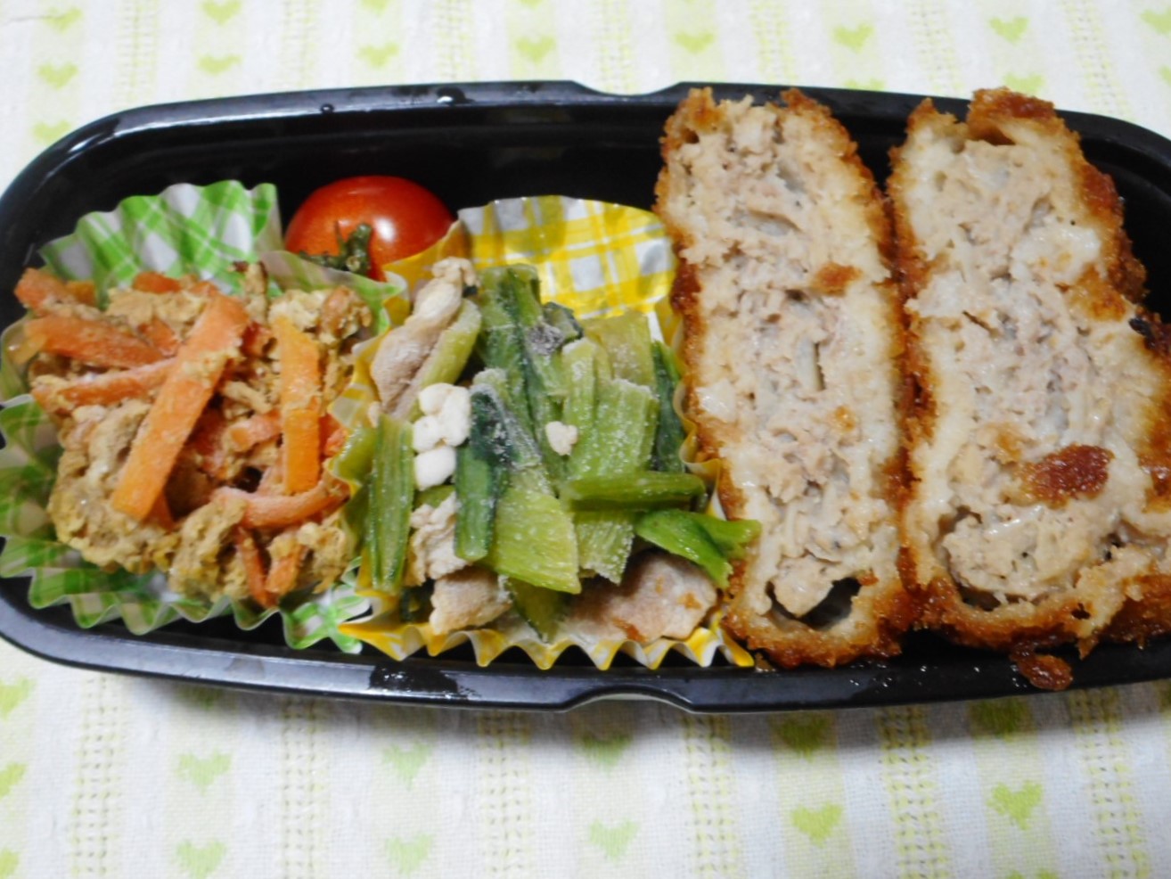 ふ~ちゃんの愛情弁当のおかずはメンチカツ弁当ですよ、お気に入りのメンチカツを👸姫様が前日に買ってくれてました、これを弁当に入れました、相変わらず美味しかったですよ💕