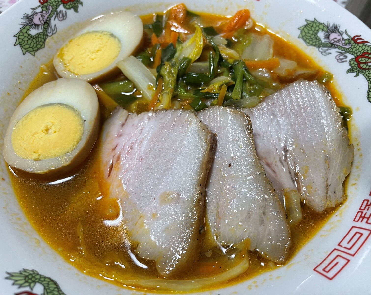 こんな感じで出来上がりました!!味玉入り叉焼麺です、ごはんも用意すれば良かったですね!!